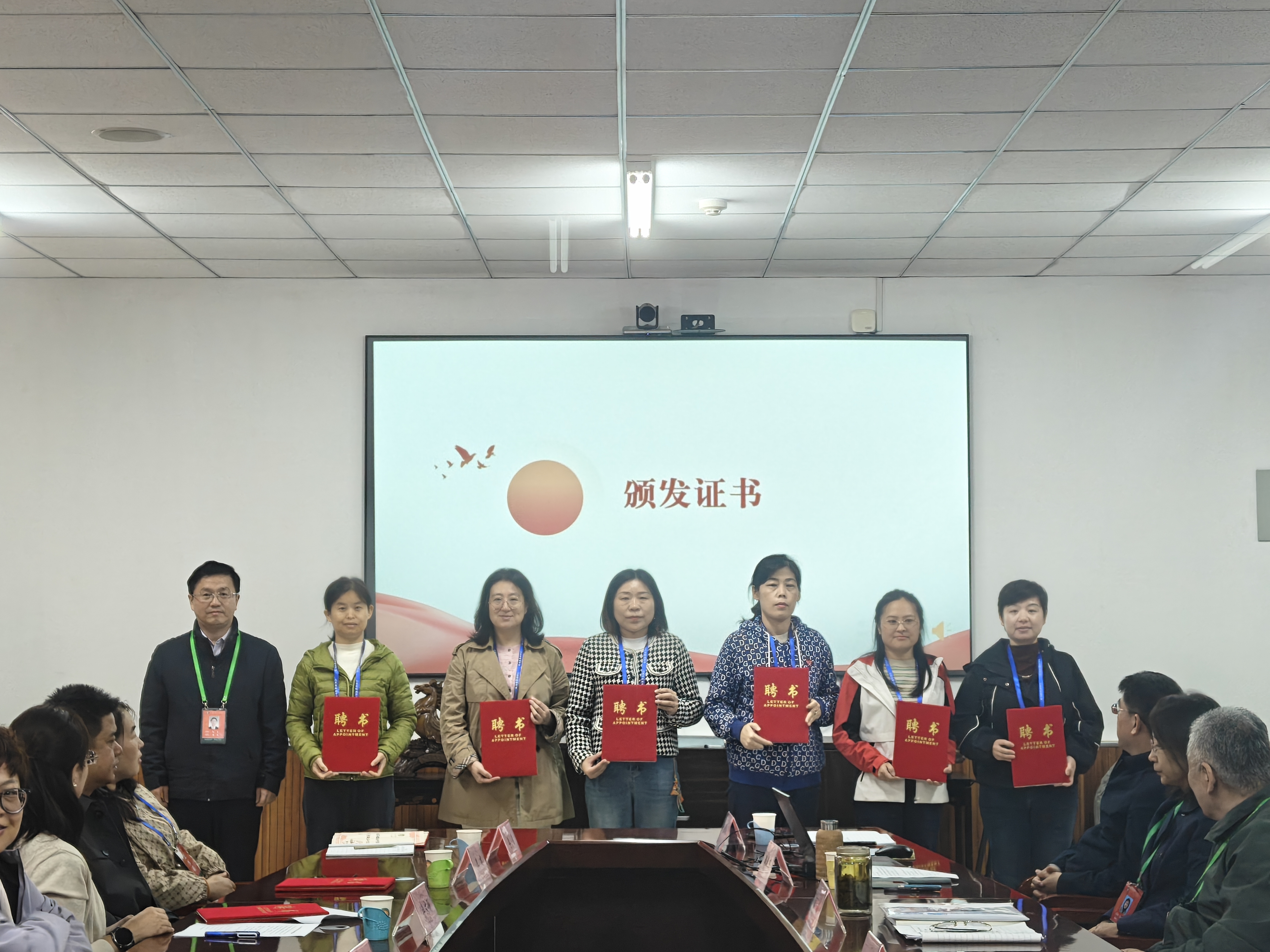 会议伊始,学校领导为本届委员们颁发了聘任证书。