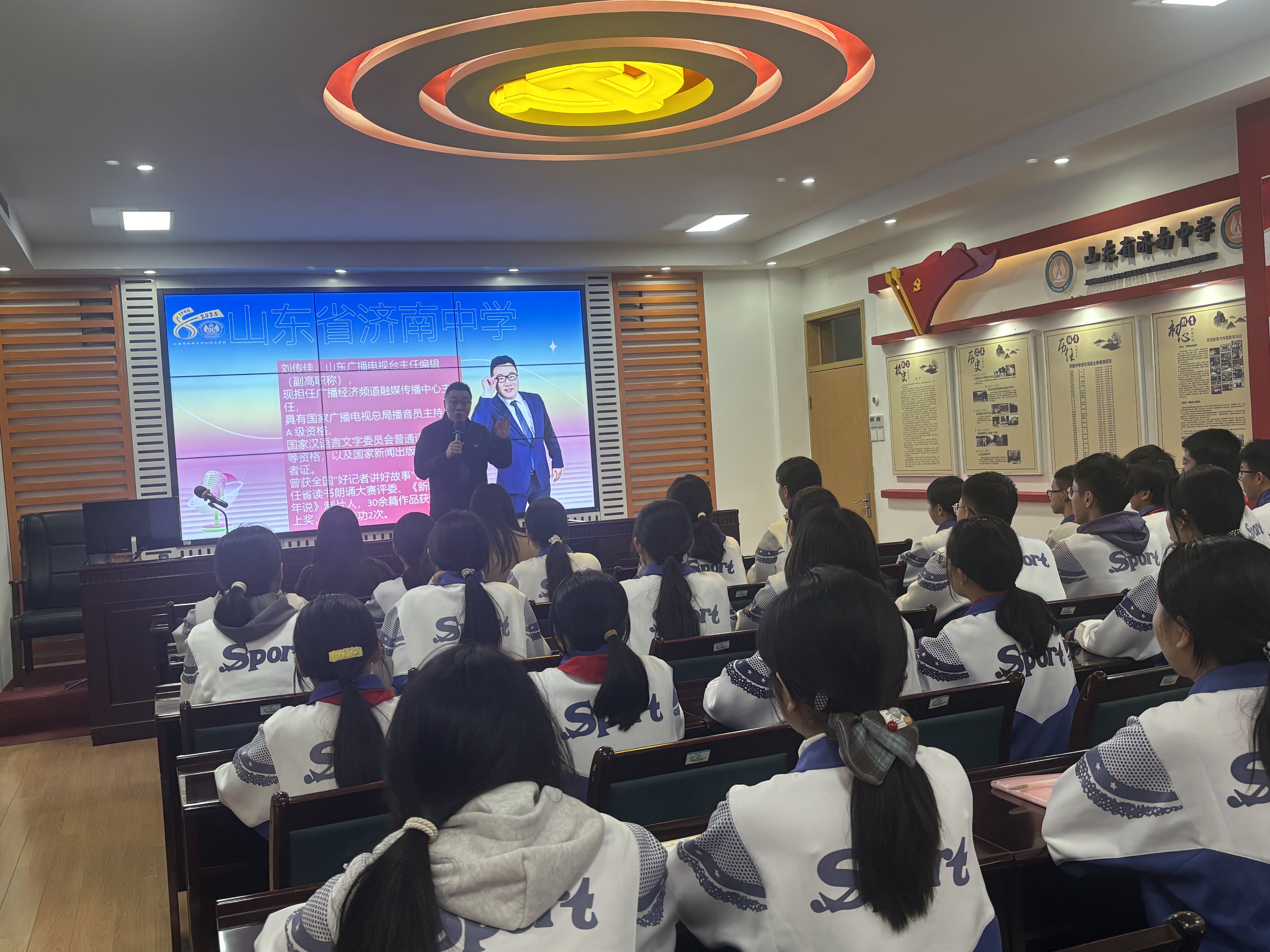 成员齐聚开启新程,专家赋能助力提升 10月23日下午,广播站成立暨培训会在学校一号楼3楼党员活动室举行。济南中学副校长梁英波在致辞中强调:“广播站是连接师生、传递价值的桥梁,希望同学们以声音为媒介,展现青春风采,传递正能量。”山东广播电视台主任编辑刘传佳为全体成员开展专业培训,从语言表达、栏目策划到听众互动,深入浅出地讲解广播工作的核心要点。会上还举行了广播站成员及指导教师聘书颁发仪式,并通过互动交流进一步明确栏目优化方向。
