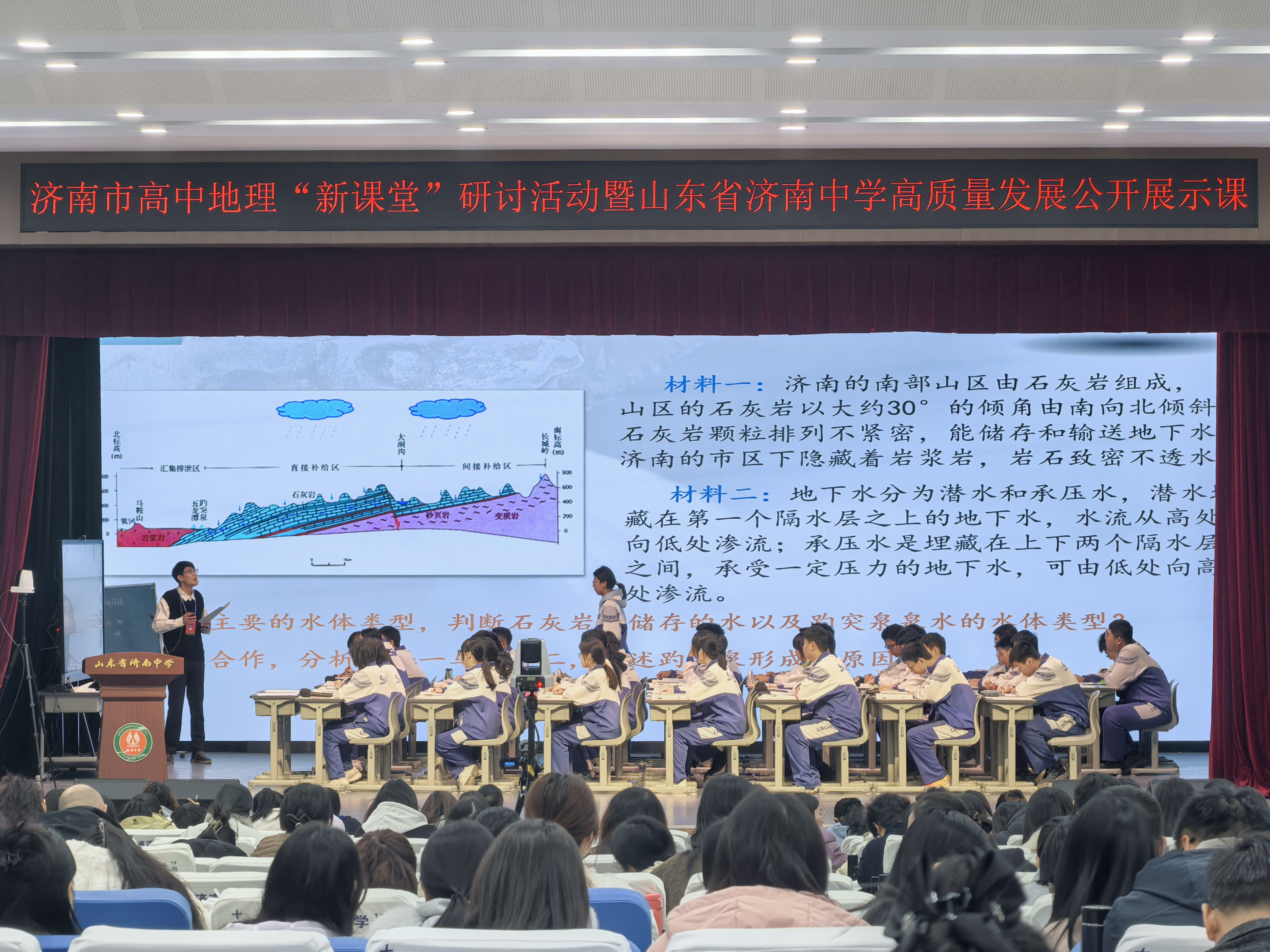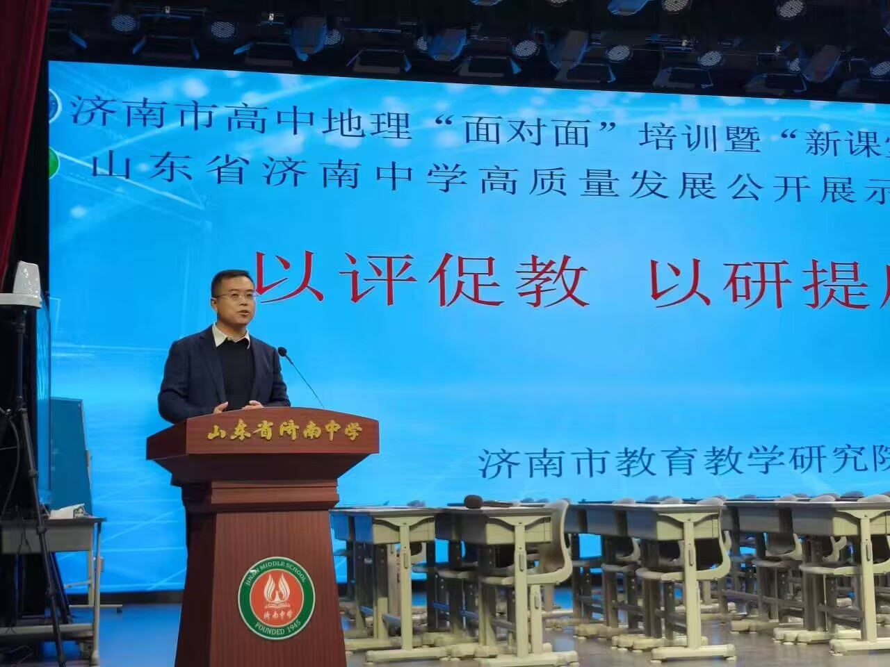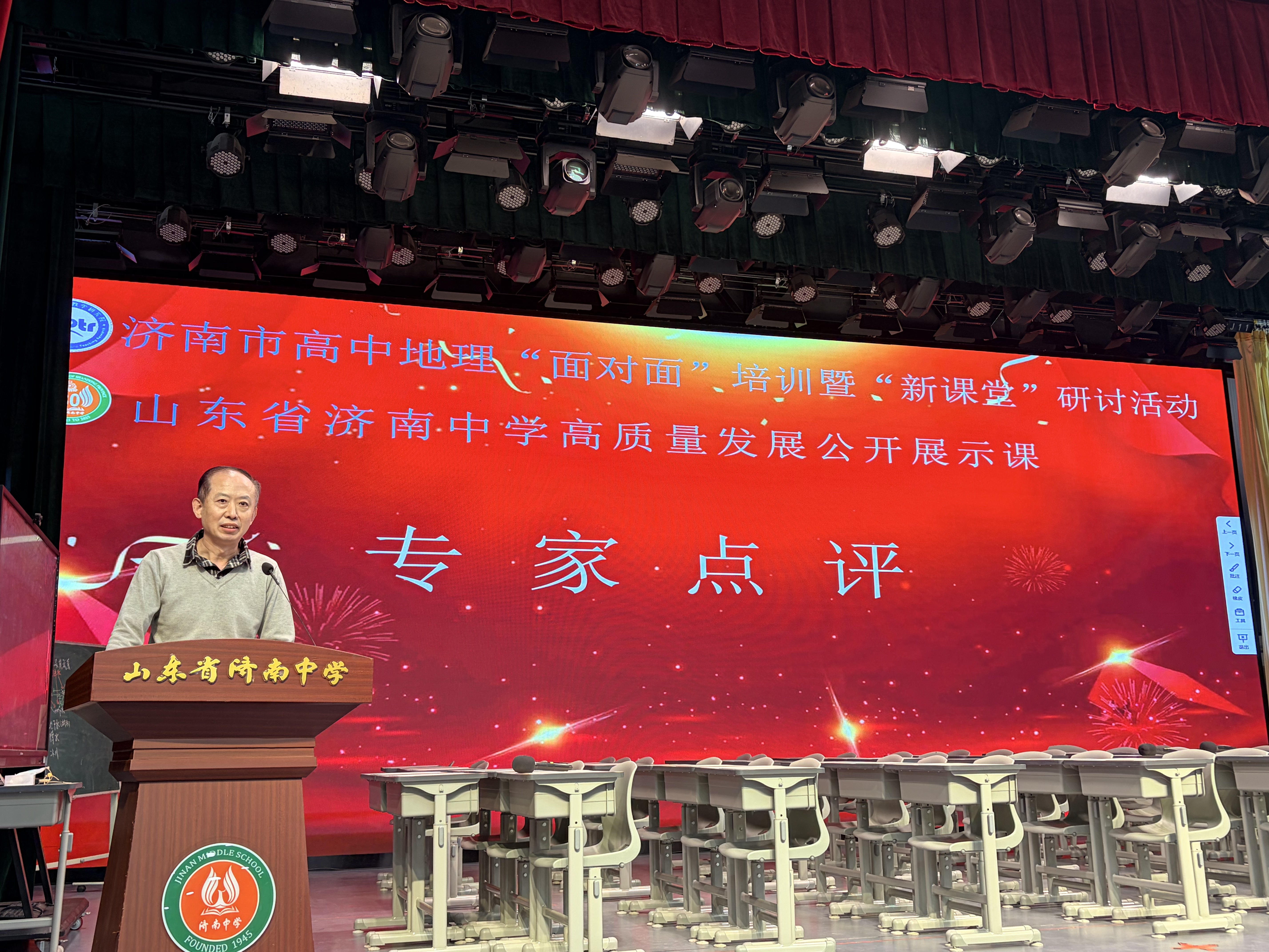 金秋送爽,硕果飘香。11月13日,山东省济南中学成功举办高中地理学科“面对面”培训暨山东省济南中学“深耕务本课堂,进阶思维逻辑”高质量发展公开课,两节别开生面的地理课把在场的师生深深吸引!济南市教育教学研究院高中地理教研员元杰、刘晖,济南中学校长董亚,副校长梁英波、安学保,教学管理部主任马宁宁,以及来自全市的2025年高中地理面对面培训教师、学科“新课堂”项目成员共同观摩,活动由济南中学铁一校区高中地理教研组长李爱芳主持。