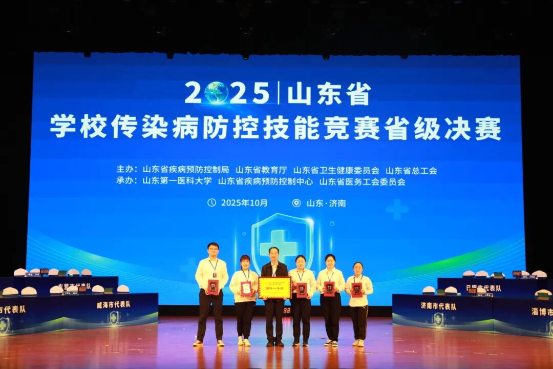在2025年山东省学校传染病防控技能竞赛决赛中,金忠坤从全省近百名选手中脱颖而出,斩获个人一等奖!此前,她已在济南市竞赛中拿下二等奖并晋级省赛。两张证书,是对她个人能力的肯定,更印证了学校深耕卫生健康工作的长期坚守与硬核底气。
