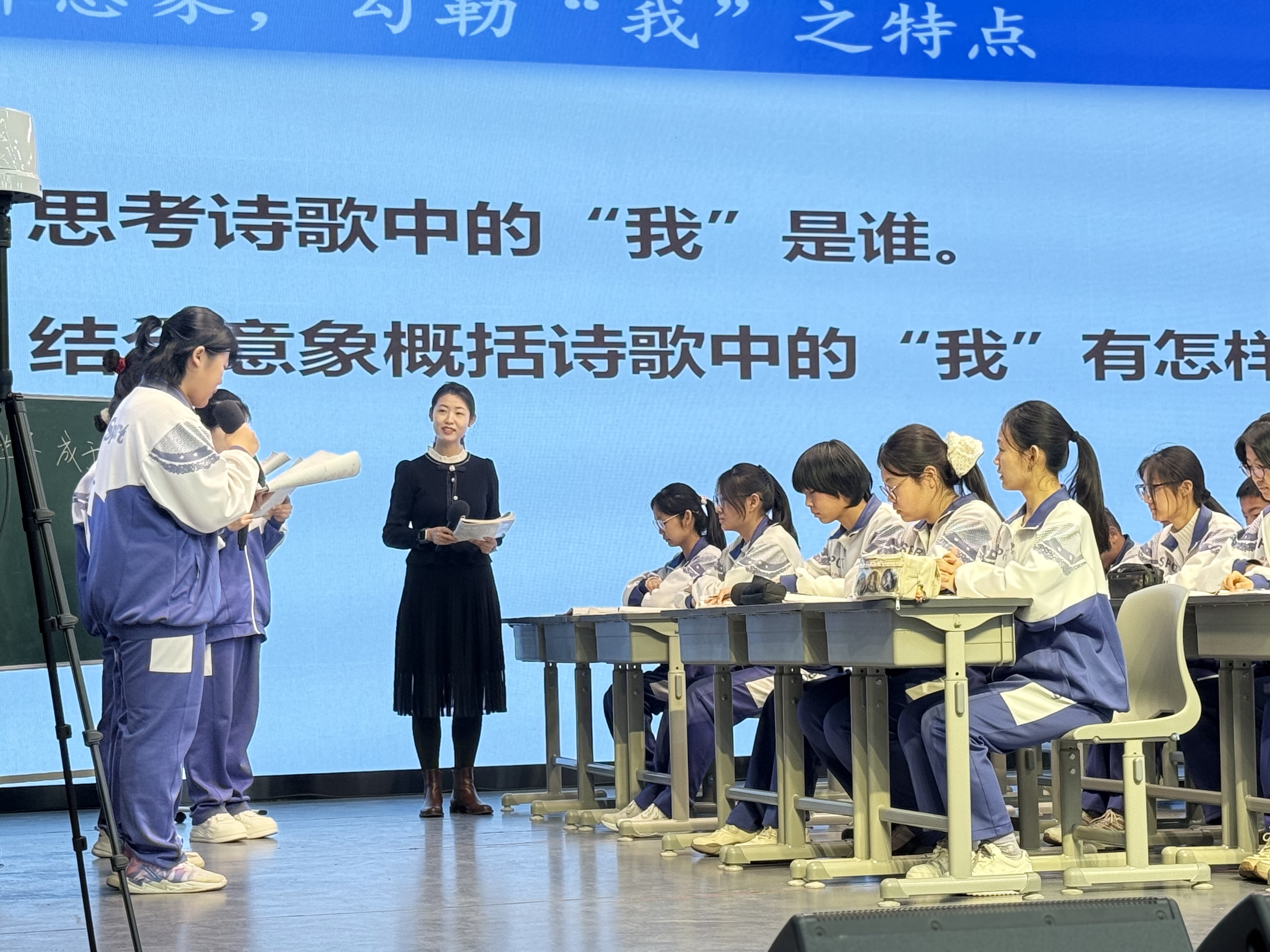 在随后的课堂设计阐释环节中,两位执教老师分别分享了他们的设计思路。姜昕重点介绍了如何通过“联读”策略,拓展文本解读的广度与深度,培养学生整体感知与批判性思维的能力。杨静则阐述了如何与诗人建立情感的共鸣,引导学生从被动接受到主动探究,在言语实践中提升审美鉴赏与表达能力。她们的分享集中展现了“新课堂”在优化学习方式、提升阅读素养方面的积极探索。 思维在交流中深化,智慧在碰撞中升华。新课堂项目成员代表韩萃文、王晓涵进行了议课发言。她们认为,这两堂课是“新课堂”理念的生动实践,不仅关注知识的传授,更着力于学生审美感知、情感共鸣与逻辑思维能力的综合培养,为观摩教师提供了宝贵的研讨样本。