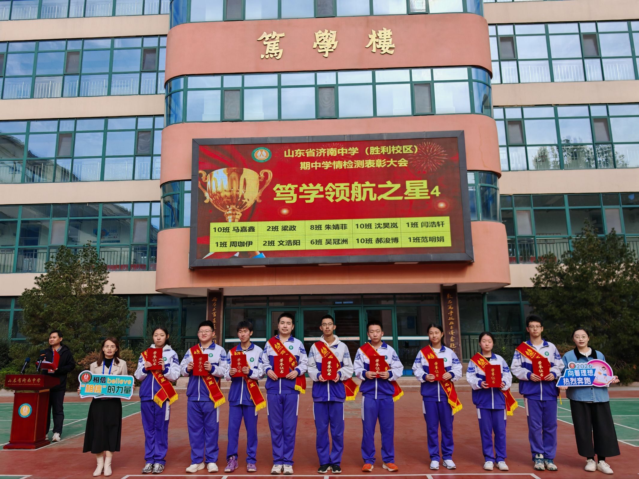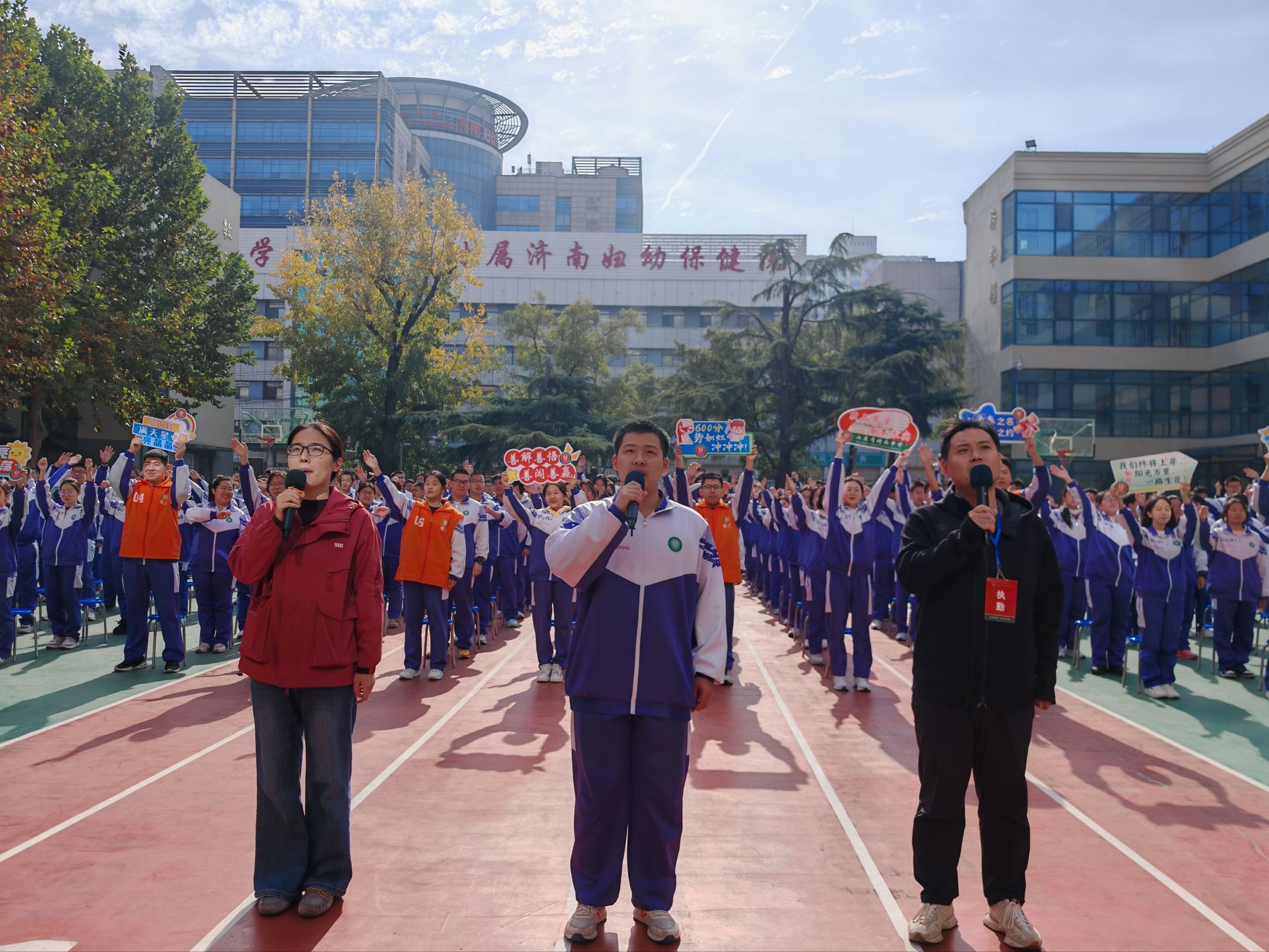 从心理疏导时的温情相伴到教学攻坚中的务实笃行,从榜样激励中的初心传承到家校协同中的同心聚力,济南中学胜利校区将校训“务本求实”的精神深植于育人细节。在学校八十华诞的荣光里,校区全体师生家长同心聚力、砥砺前行,用爱与责任护航成长,用实干与坚守书写担当,为高三学子的青春梦想保驾护航!