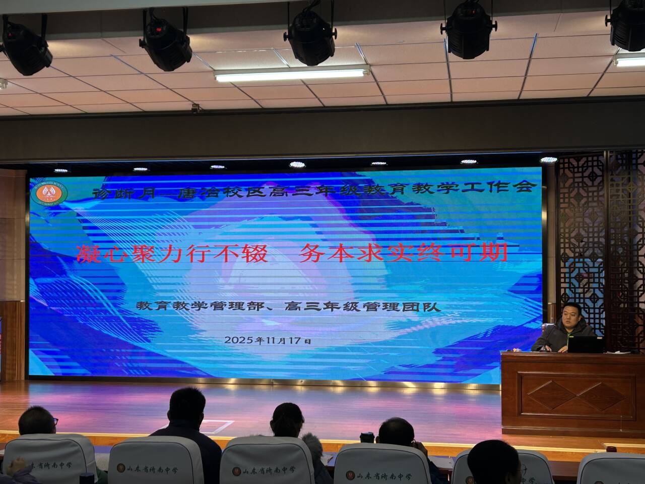 11月17日下午,济南中学唐冶校区召开高三年级教育教学工作会。教育教学管理部主任郭淑杰,办公室主任、高三年级管理团队主任王庆,学生发展部副主任、高三年级管理团队主任王佳,高三年级主任张延磊、宋艳以及高三年级全体教师参会。