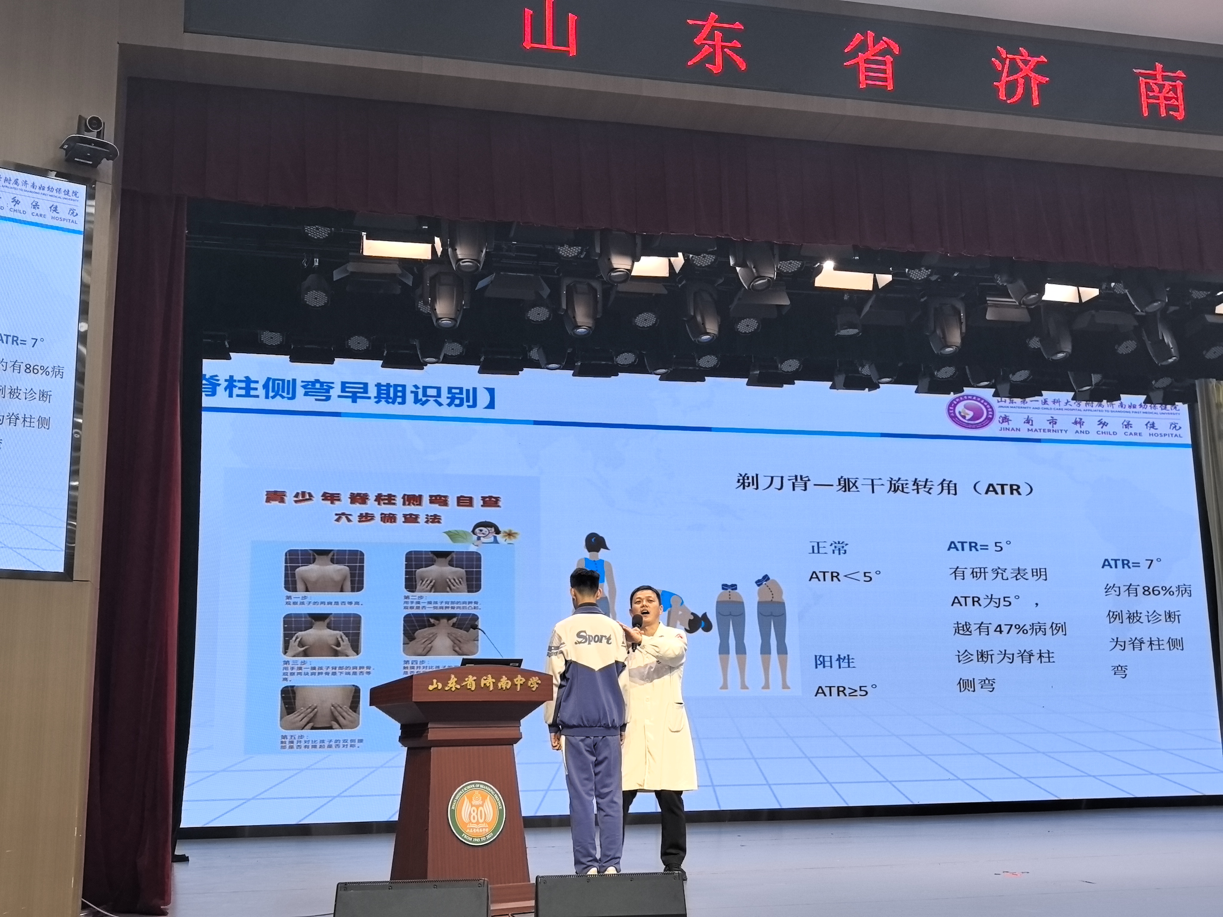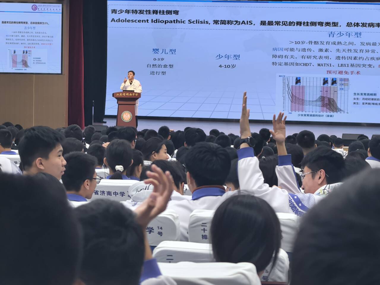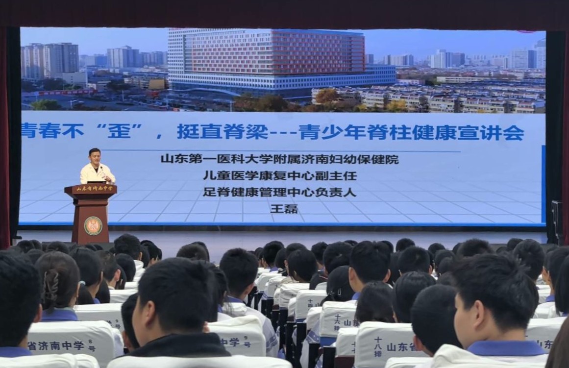 为提升青少年脊柱健康意识,助力学子们拥有挺拔身姿与健康体魄,2025年11月19日,山东第一医科大学附属济南妇幼保健院儿童医学康复中心副主任、足脊健康管理中心负责人王磊主任走进山东省济南中学铁一校区,在大礼堂为高一学子带来了一场主题为“青春不‘歪’,挺直脊梁”的青少年脊柱健康宣讲会。
