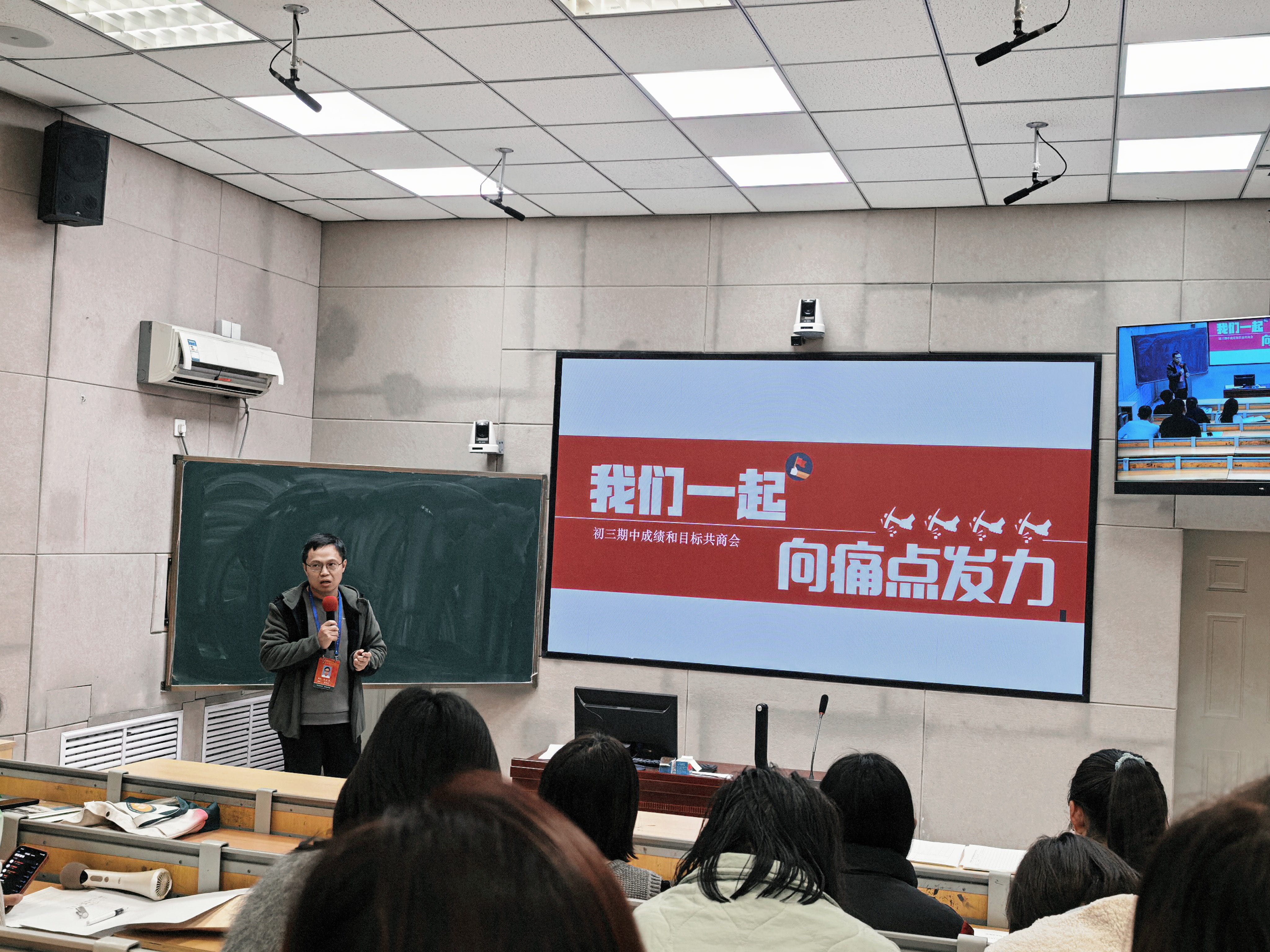 【以 “十步曲” 筑桥:家校同心,共赴未来】 在济南中学八十周年校庆的温暖氛围中,初中部紧扣“期中考试十步曲”收官环节,以“八秩弦歌育初心·家校同心促成长”为主题,分年级、分班级陆续召开期中家长会。这场跨越校园与家庭的“成长之约”,将考试数据分析、学情研判、榜样激励与家校沟通深度融合,让家校协同成为推动教学高质量发展的强大合力。