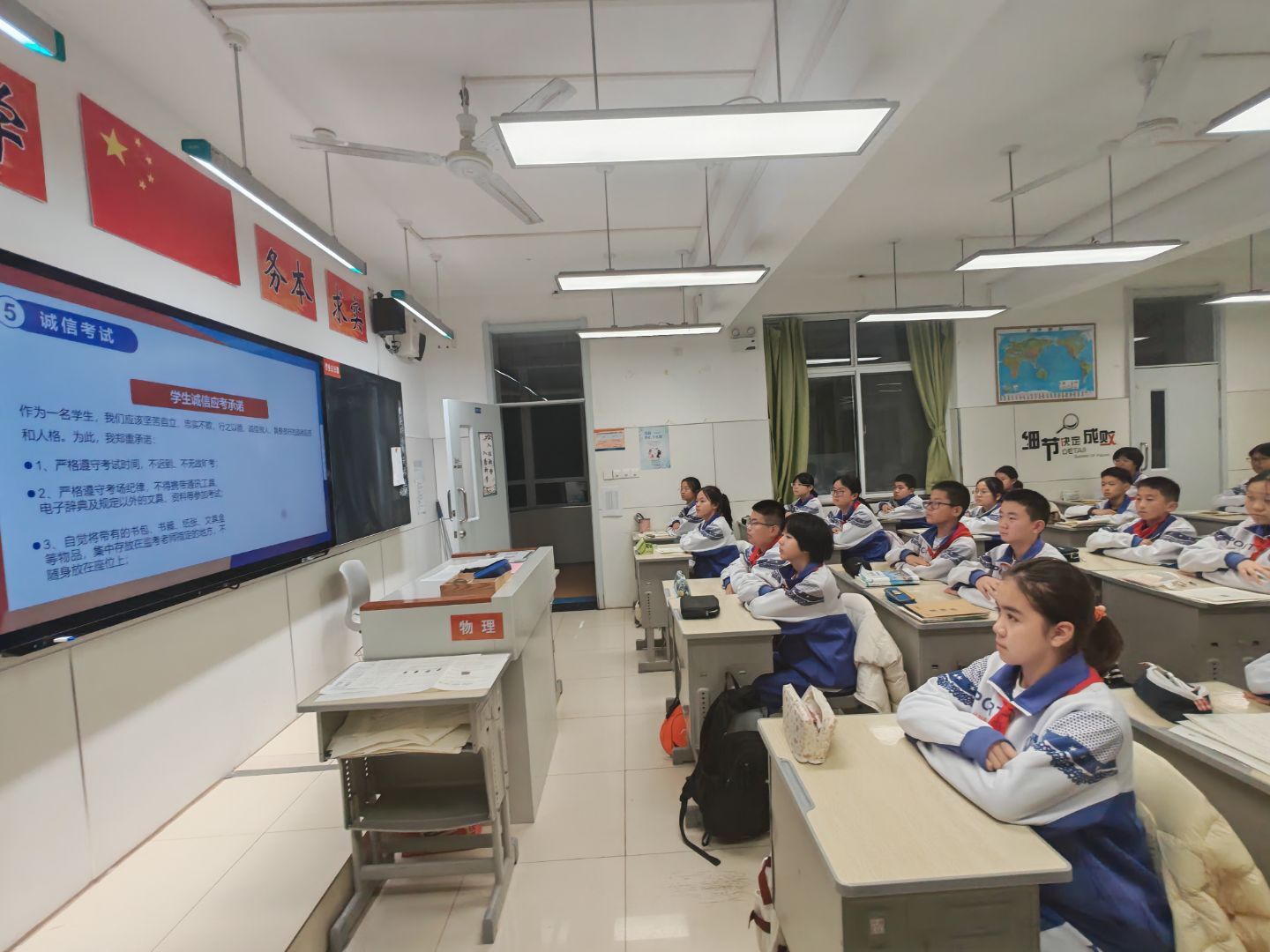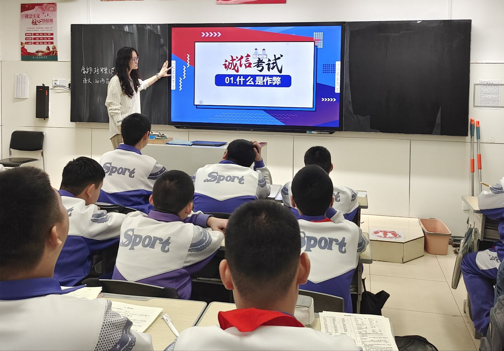期中考试不仅是学业检测的节点,更是育人工作的重要抓手。近日,山东省济南中学初中部推出期中考试 “十步曲” 流程,从考务到考后分析、家校沟通,以全流程闭环管理,让期中检测成为撬动教学质量提升与学生成长的关键支点。 【以 “十步曲” 立规:诚信立身,笃行致远】 为培养学生诚信品质,筑牢思想道德根基,初中部将其作为“十步曲”开篇要义。考前一周,各班召开“诚信考试・与校庆同行”主题班会,18位班主任结合诚信治学的传统故事,解读考试规则与诚信内涵,通过案例分析、小组讨论等形式,让济中学子们深刻认识到:诚信应考既是对自身学习成果的尊重,也是对八秩学府育人初心的传承。班会现场,学子们郑重签订诚信应考承诺书,这些承载青春誓言的承诺书被整齐张贴在各班电子班牌下方,构成校园里一道兼具仪式感与教育意义的风景线。