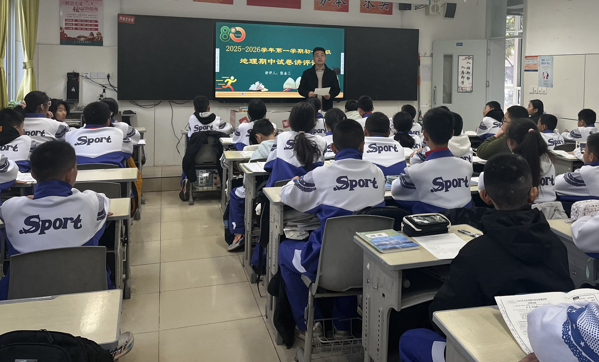 【以 “十步曲” 织锦:精评细讲,赋能成长】 试卷讲评是连接考试检测与教学提升的关键纽带,既是学情诊断的“反光镜”,更是精准补漏、赋能成长的“导航仪”。为落实“逢考必评、以评促学、以评促教”的教育理念,期中检测结束后初中部迅速启动精细化试卷讲评工作。学校校长、书记亲自深入课堂听课指导,对各学科精准施策的讲评模式给予充分肯定,并提出针对性优化建议。本次试卷讲评打破“逐题讲解、囫囵吞枣”的传统模式,各学科老师围绕试卷中的核心考点、高频错题和思维卡点,以学情数据为依托,通过精准定位问题、深度剖析根源、设计变式训练,引导学生不仅“知其然”,更“知其所以然”,在纠错中完善知识体系,在探究中提升思维能力,让每一节讲评课都成为提质增效的“黄金课堂”。
