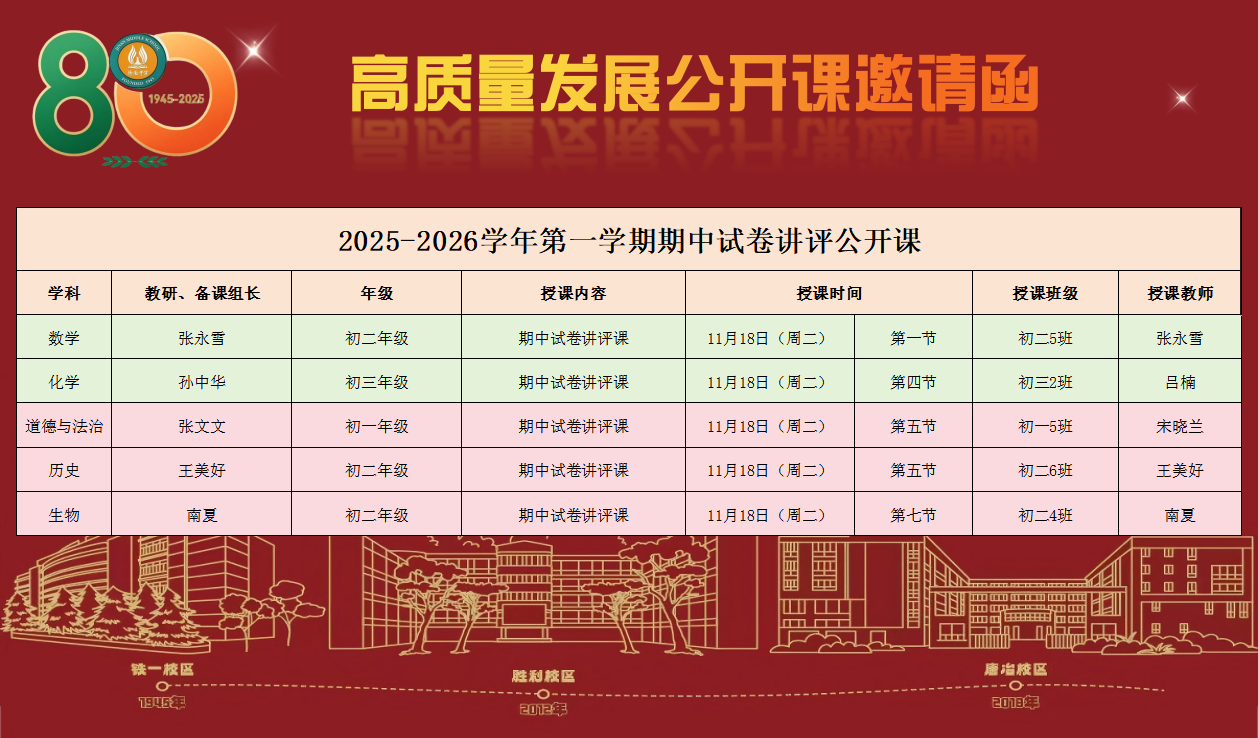 八秩耕耘,薪火相传;十步精耕,育人为本。济南中学初中部以“期中考试十步曲”为脉络,将诚信教育、精准教学、学情研判、家校协同贯穿始终,既扎实落地教学常规,又深度传承校庆育人基因。在八十华诞的新起点上,初中部将继续以匠心深耕教学沃土,用协同凝聚育人力量,书写教育高质量发展的崭新篇章。