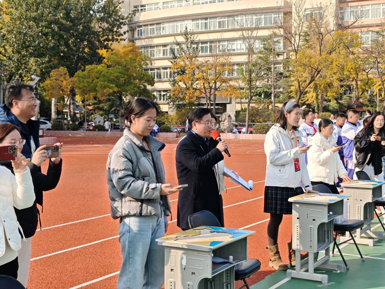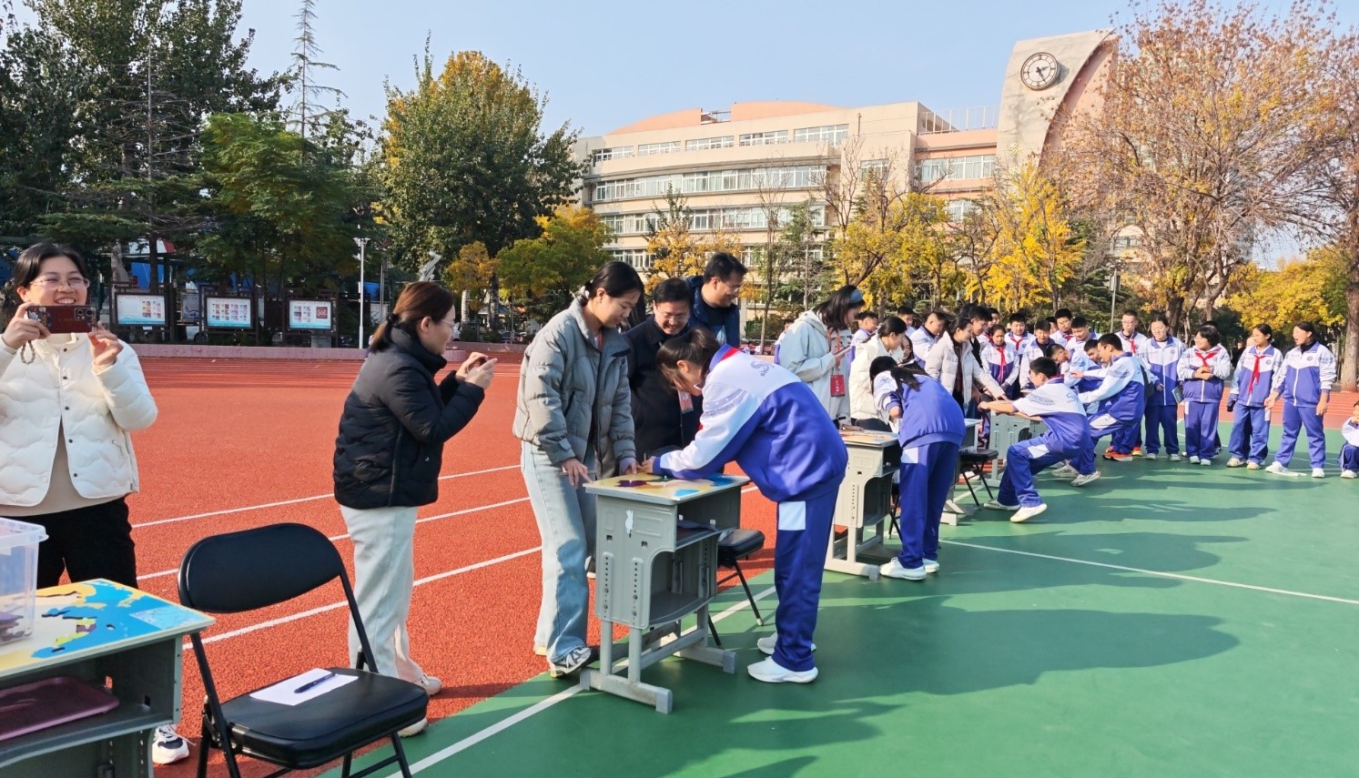2025年11月3日济南中学初中部成功举办第二届“祖国在我心中”中国政区拼图大赛。为进一步提升学生地理学科素养,激发学生爱国情怀,初二年级地理组精心策划的第二届“祖国在我心中”中国政区拼图比赛在大操场隆重举行。本次活动将知识性、竞技性与趣味性完美融合,为全校师生带来了一场别开生面的地理实践盛宴。