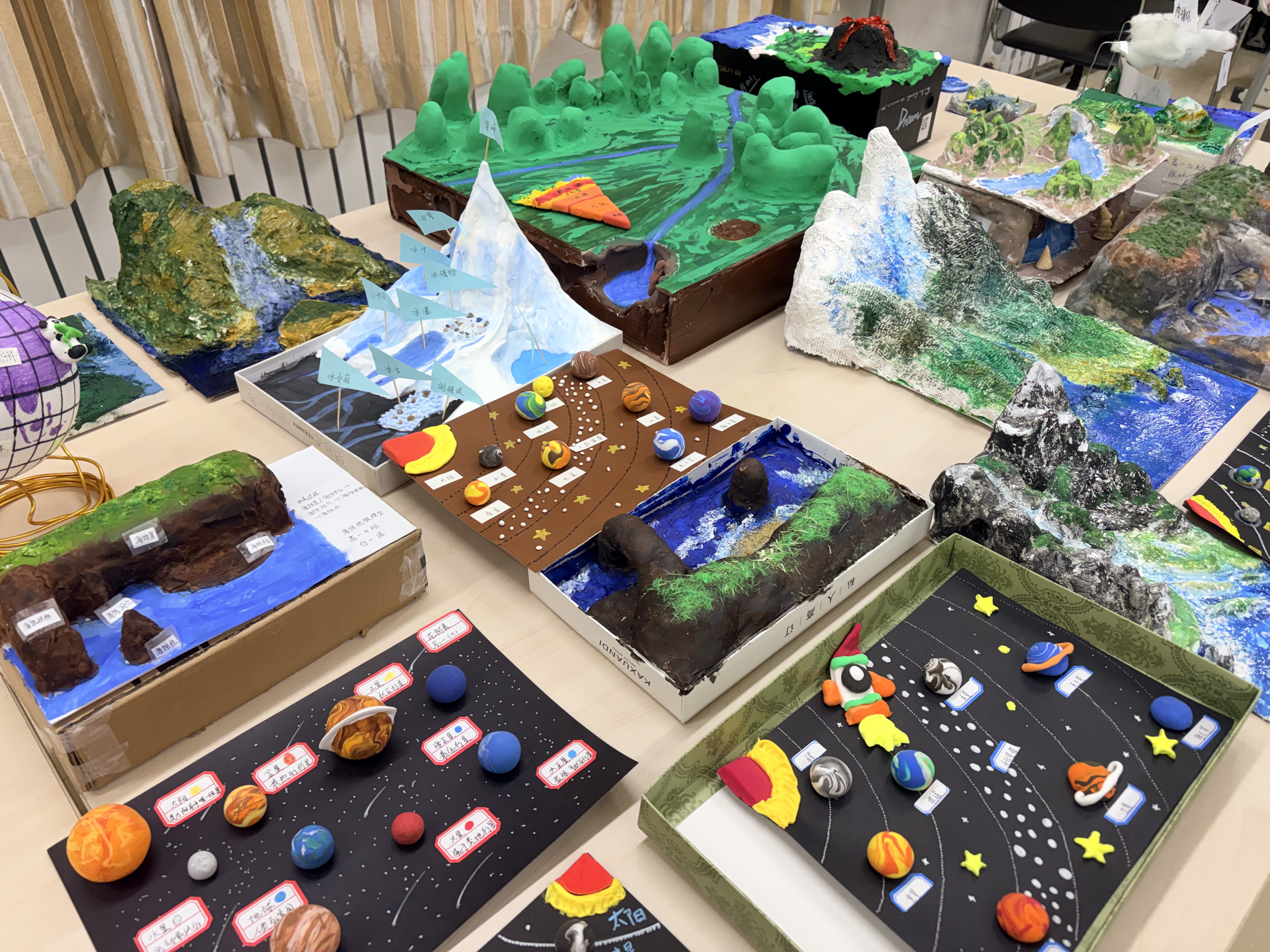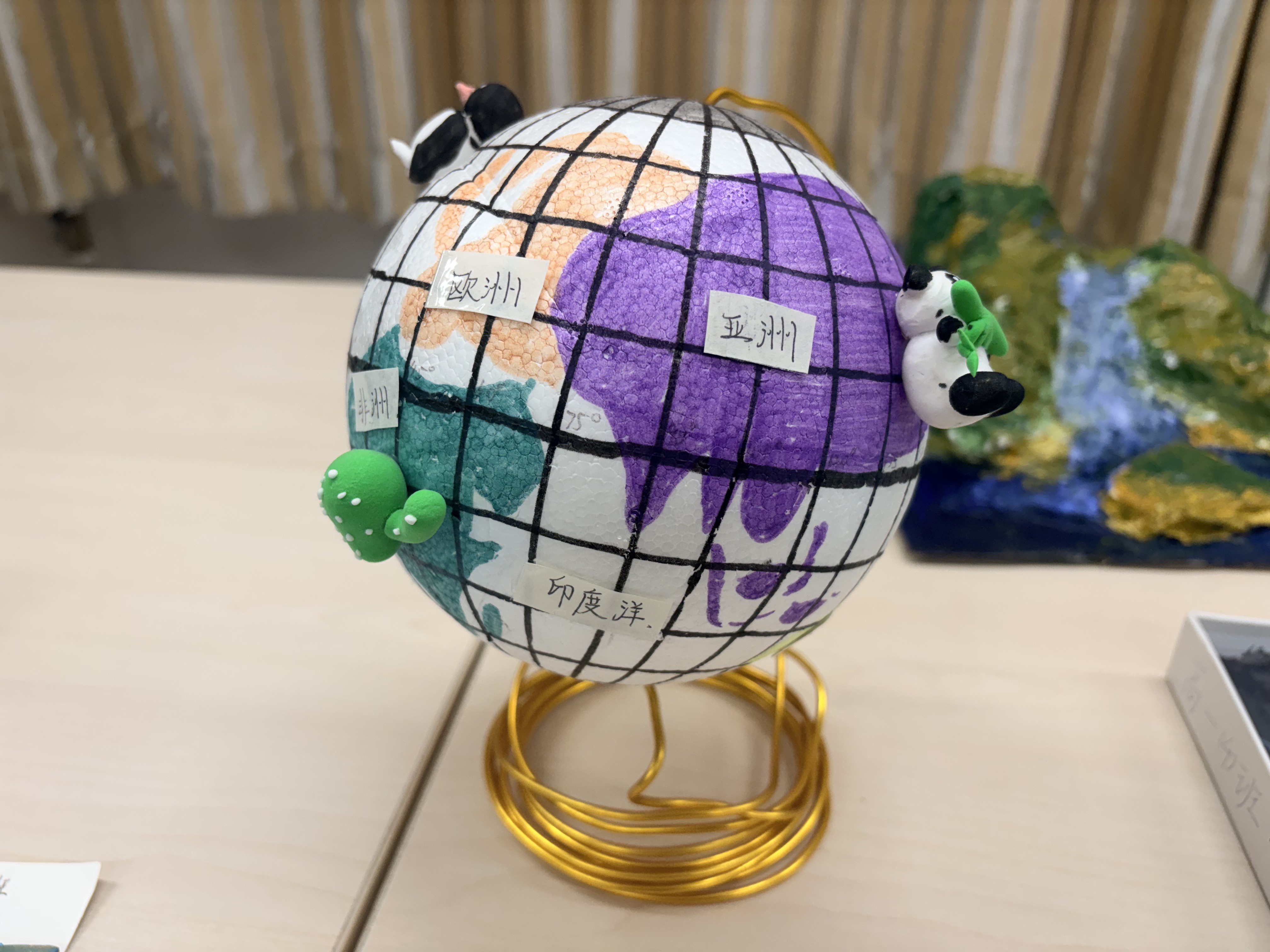 创意绽放:模型里的地理世界 消息一经发布,高一年级学生热情高涨,有的独自查阅教材、资料打磨细节,有的组队分工负责选材、制作,超轻黏土、硬纸板、颜料、塑料瓶、吸管等日常材料,在大家手中逐渐变成承载地理知识的“创意道具”。提交作品环节,教学楼展厅教室内摆满了同学们的精心之作,一件件充满巧思的模型让人眼前一亮。