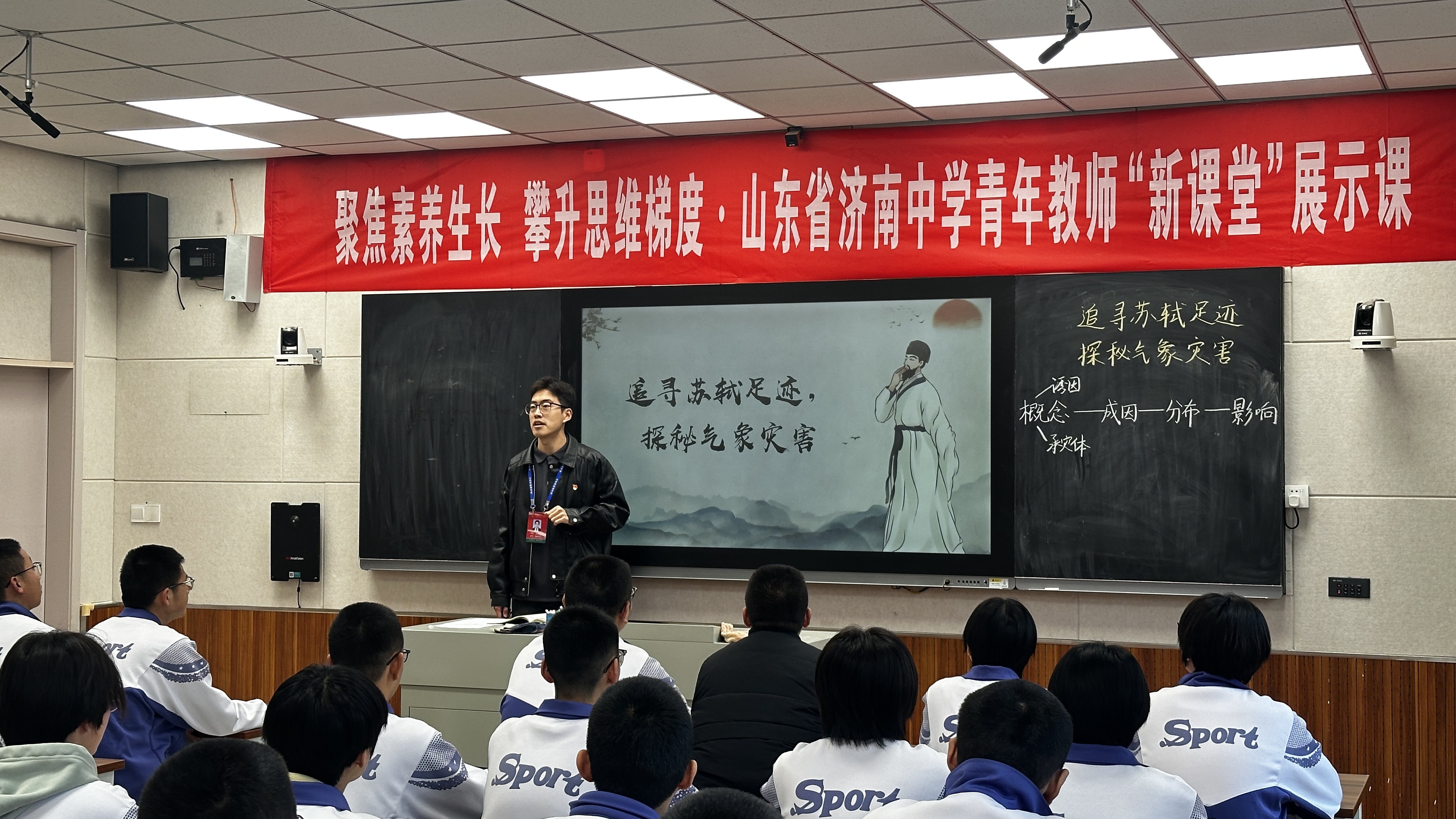 本次“聚焦素养生长,攀升思维梯度”青年教师新课堂展示活动,正是我校探索素养导向教学的有力实践。从《正弦函数、余弦函数的图像》中数形结合思维与建模能力的双重建构,到《气象灾害:追寻苏轼足迹》跨学科探究与时空分析能力的同步提升;从《排球正面上手发球》中运动技能与团队协作能力的协同发展,到《我国的社会保障》公共参与辩证思维能力的全面锻炼,再到《黄土高原水土流失的治理》区域认知与实践创新能力的深度培养——七节展示课构建了完整的能力培养体系,在情境创设与问题解决中推动学生从知识掌握向能力进阶的实质性转变。济南中学将继续以课堂为主阵地,通过多层次、多维度的教学创新,让学生在真实问题的探究中不断提升思维品质与实践能力,真正实现“新课堂”向“新素养”的价值转化。