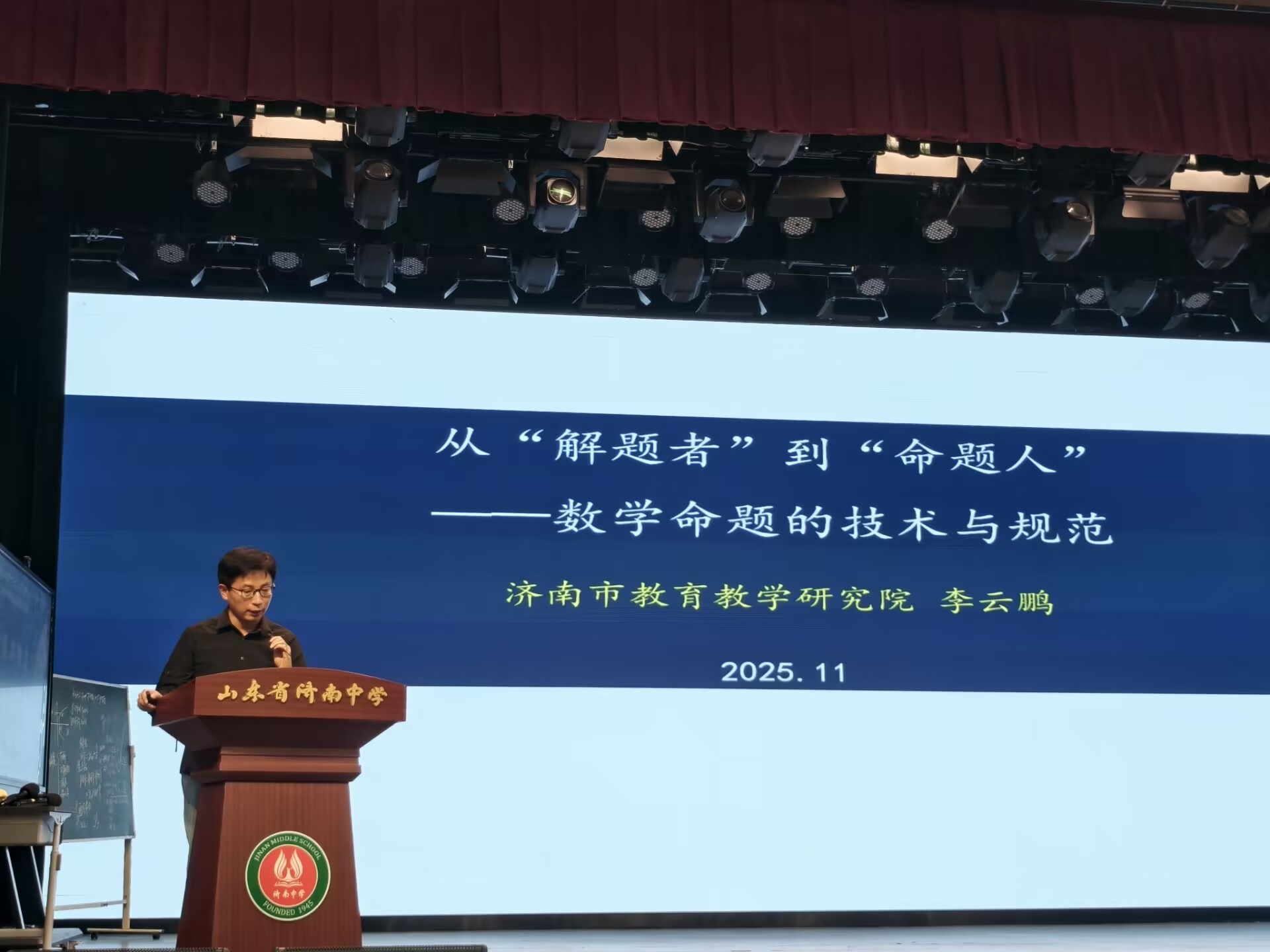 李云鹏以《从 “解题者” 到 “命题人”—— 数学命题的技术与规范》为题作微报告。他结合新课标核心素养要求,聚焦数学命题的技术要点与规范标准展开解读,既为教师搭建了 “以命题反哺教学” 的思维桥梁,也引导教师立足命题视角重构教学逻辑。