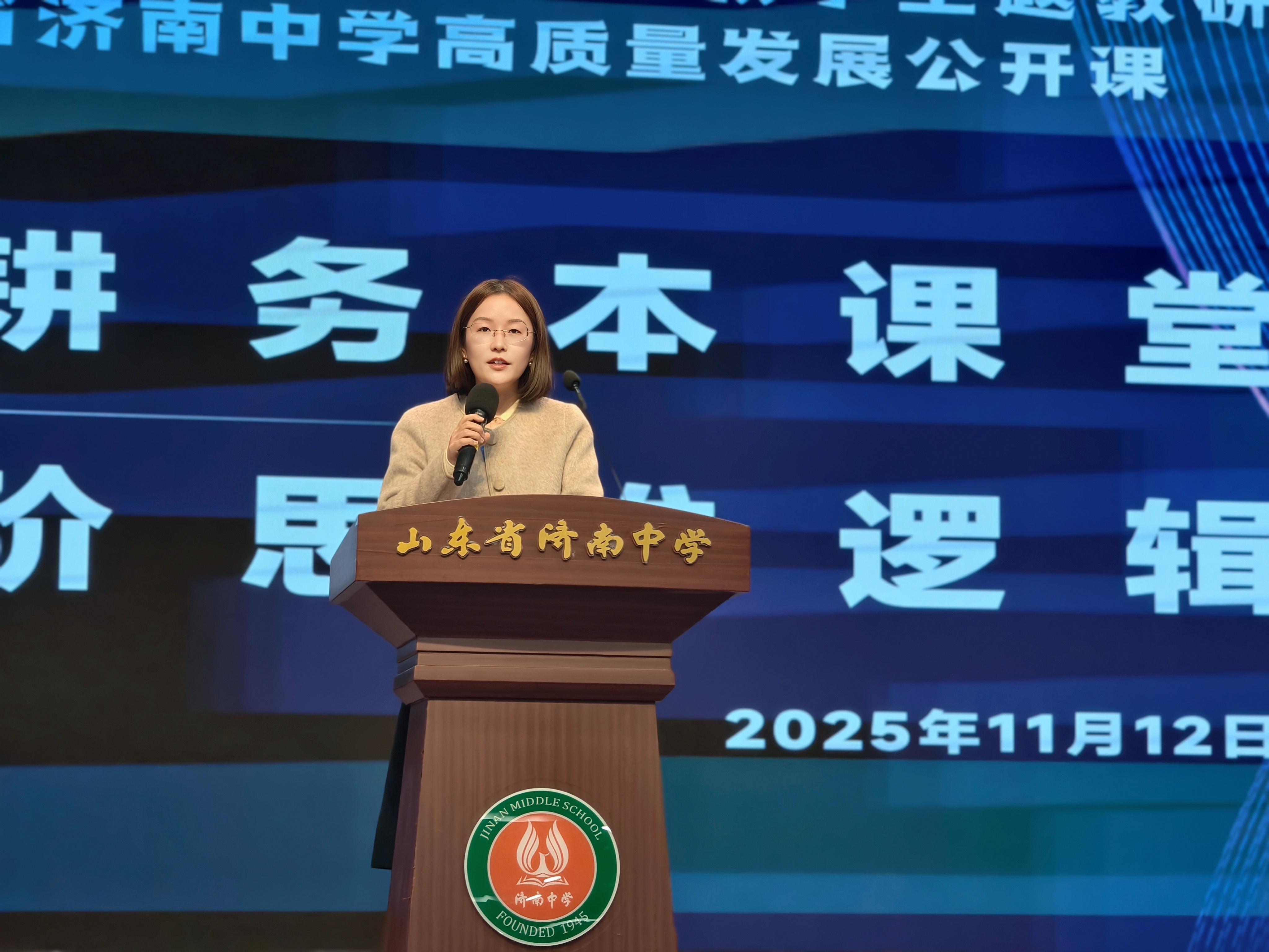 11 月 12 日,济南市高中数学思维教学主题教研 /“新课堂” 研讨活动暨山东省济南中学高质量发展公开课,在济南中学铁一校区举办。活动聚焦 “新课堂” 实践与数学思维教学落地,为济南市高中数学教师搭建交流平台。济南市教研院高中数学教研员李云鹏、李秀,济南中学副校长安学保,济南市数学教师共同观摩。本次活动由李秀主持。
