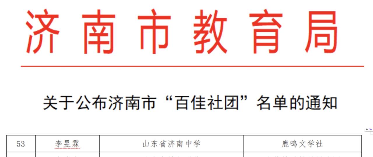 近日,济南市教育局公布了“百佳社团”评选结果,济南中学鹿鸣文学社以深厚的底蕴和蓬勃的活力脱颖而出,荣膺“百佳社团”称号,进入百佳行列,这是对鹿鸣文学社长期以来辛勤耕耘与优异成绩的肯定,更是对我校文学教育与校园文化建设的高度认可。