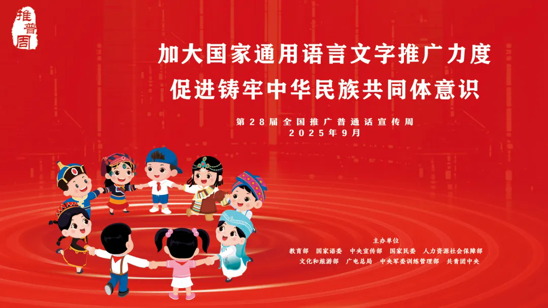 为了推进国家通用语言文字的规范和普及,经国务院批准,自1998年起,每年9月的第三周为全国推广普通话宣传周(简称推普周)。2025年9月15日至21日是全国第二十八届推广普通话宣传周,主题是“加大国家通用语言文字推广力度 促进铸牢中华民族共同体意识”。