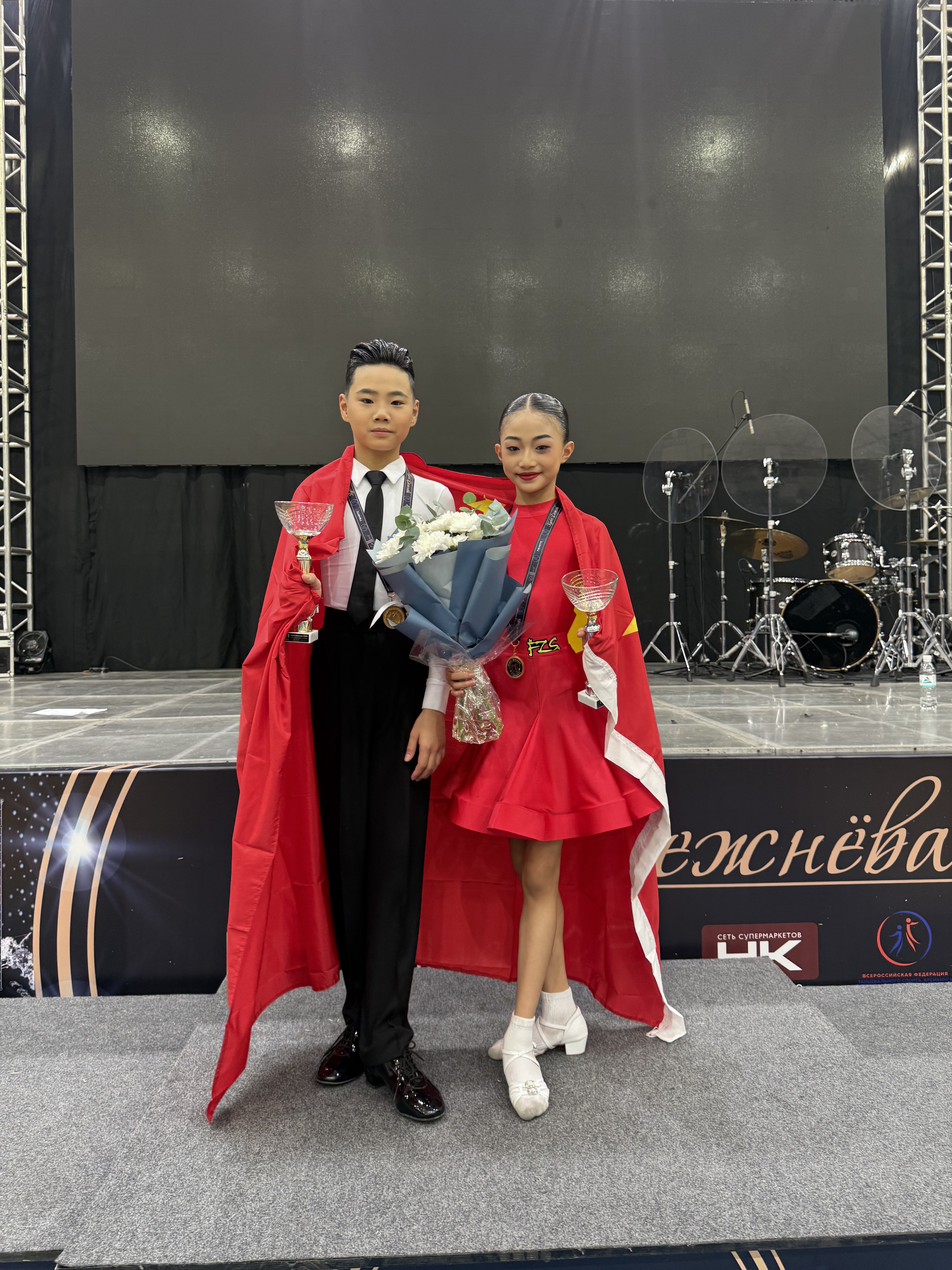 近日,在俄罗斯举办的Dezhnev Cup杰日涅夫杯国际舞蹈公开赛(锦标赛制)中,我校初中部初一年级4班学生王梓宇(男),经过多轮激烈角逐,凭借精湛的舞蹈技艺和稳定的现场发挥,成功摘得赛事冠军!
