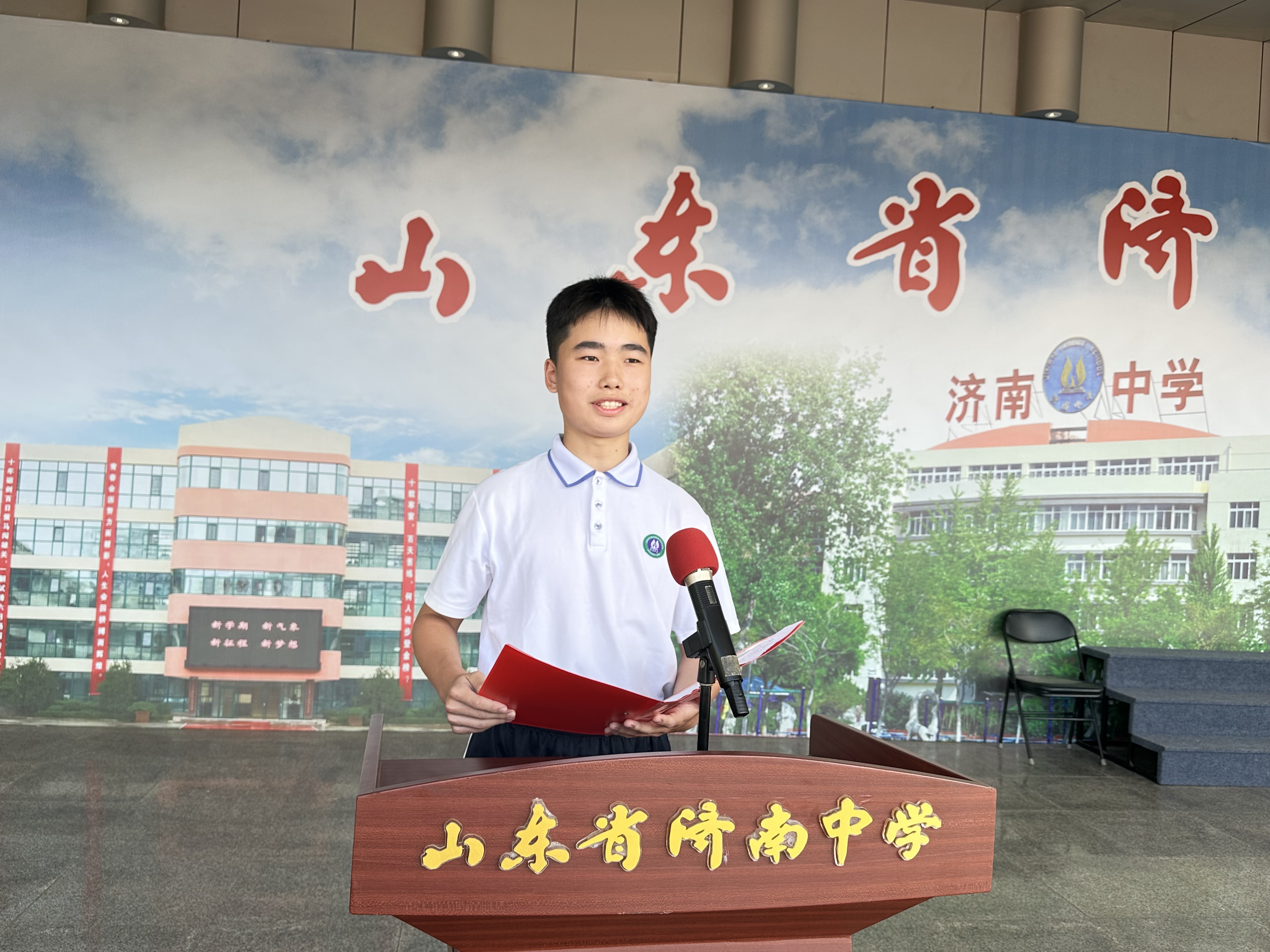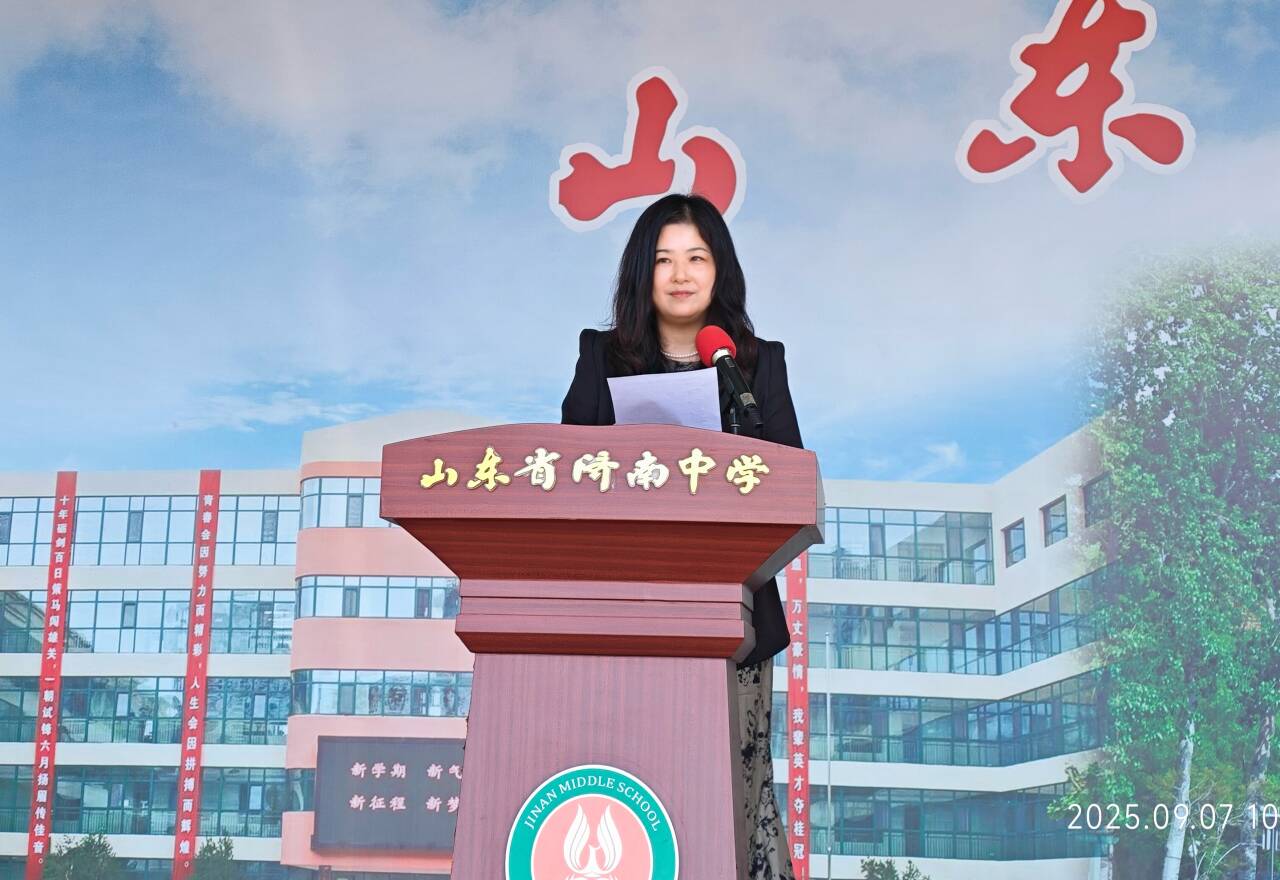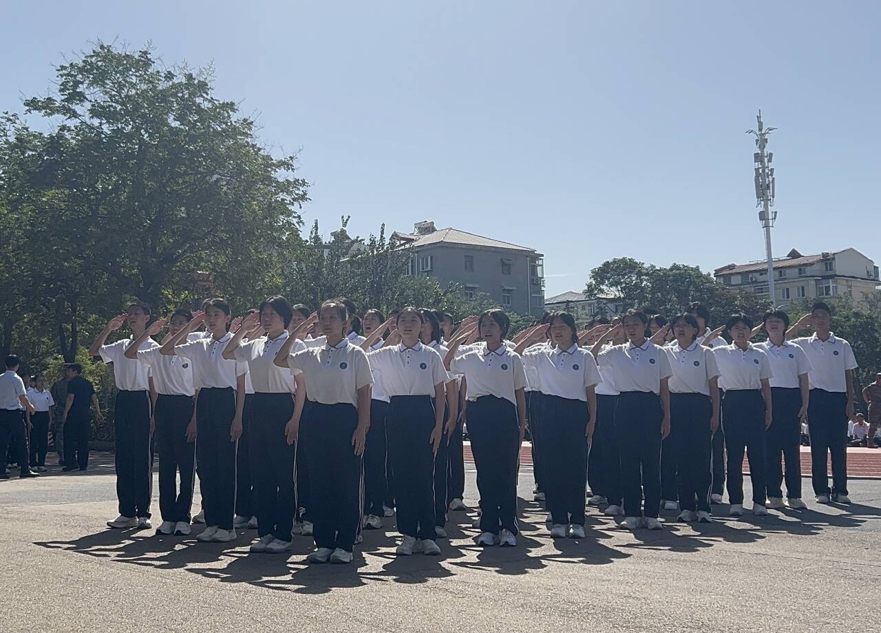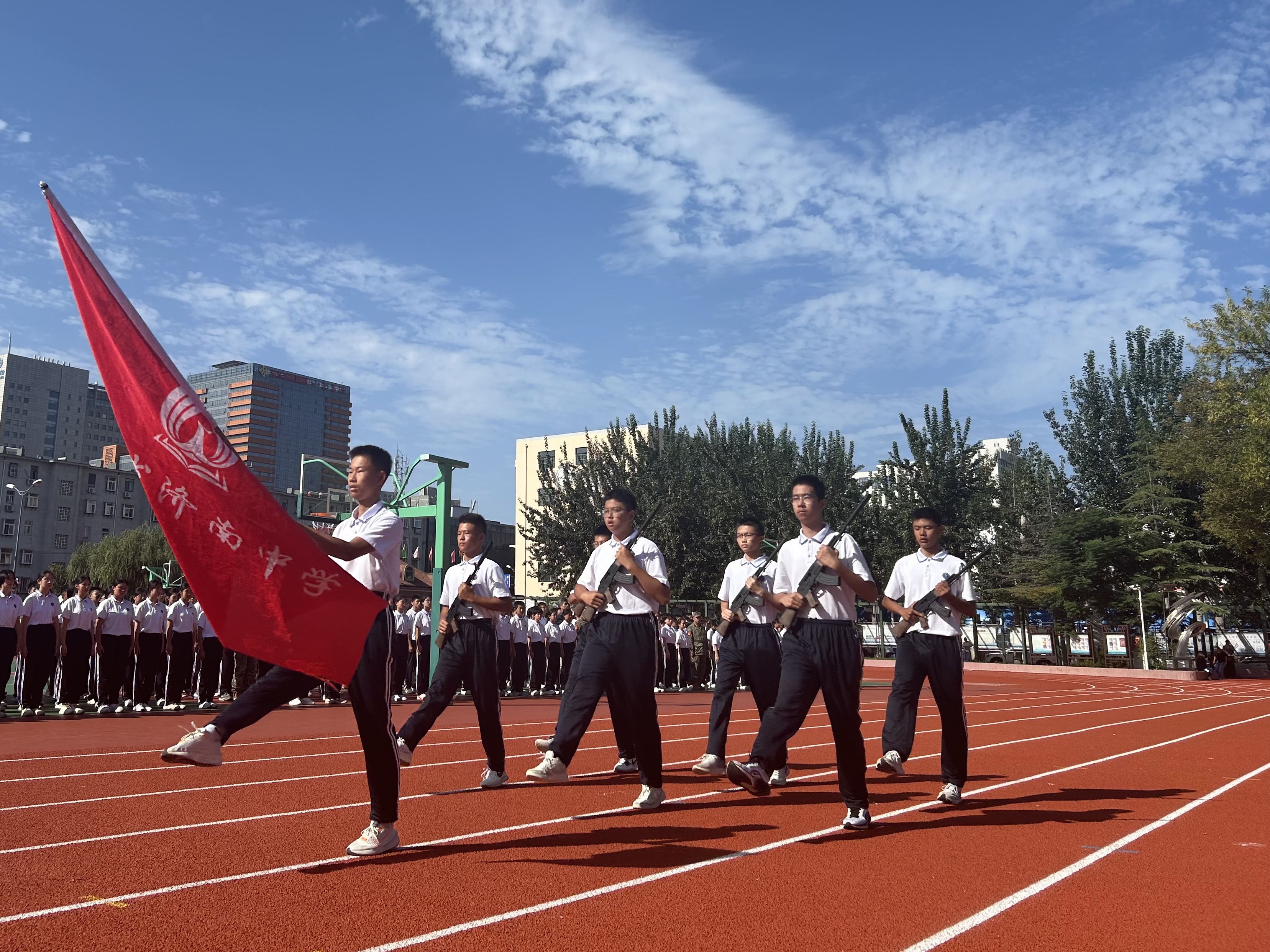 9月7日上午,山东省济南中学举行2025级新生军训闭营式。历经数日的磨砺与成长,全体新生以饱满的精神、昂扬的姿态,为军训画上圆满句号,也为高中生涯奏响嘹亮序曲。 一、升旗仪式:国旗校旗扬,肃立燃信仰 济南中学2025级军训闭营式在庄严氛围中拉开帷幕。伴随着雄壮的《义勇军进行曲》,五星红旗迎着晨光冉冉升起,全体师生肃立行注目礼,嘹亮的歌声穿透校园,爱国情怀在每个人的胸膛中滚烫激荡。当国旗升至杆顶,校旗亦迎着微风入场,鲜红的校旗与新生们整齐的校服交相辉映,既彰显着济南中学的精神传承,也象征着新生与学校的崭新联结。