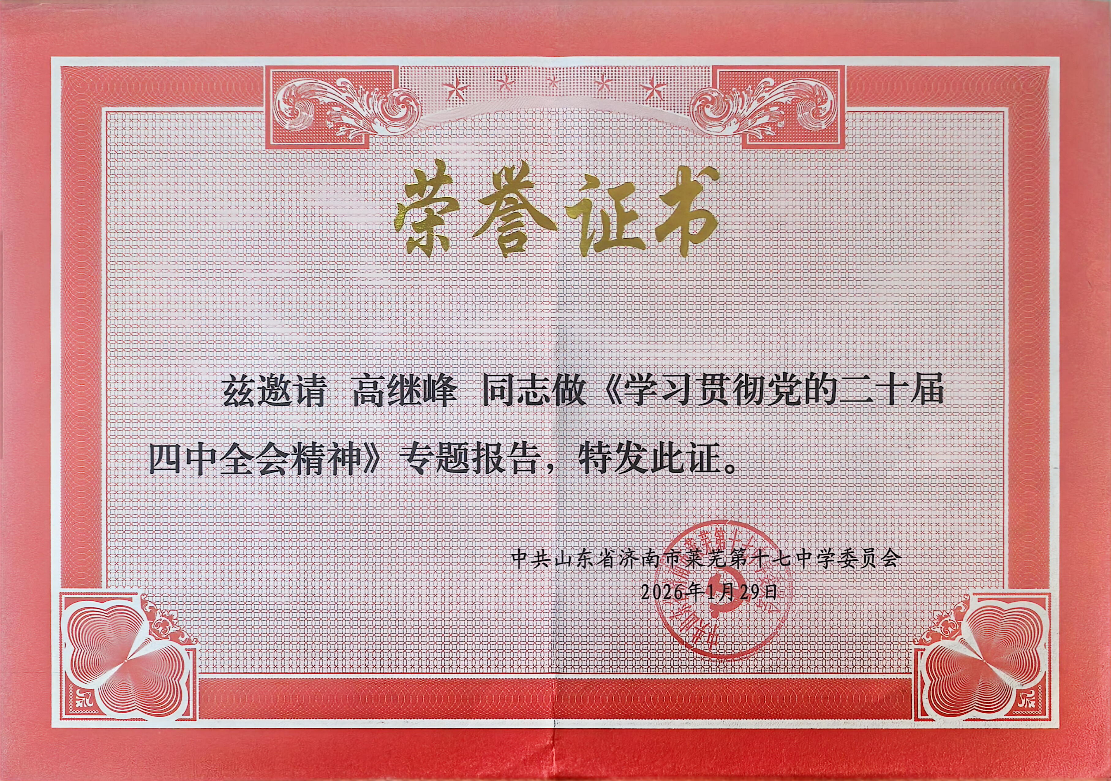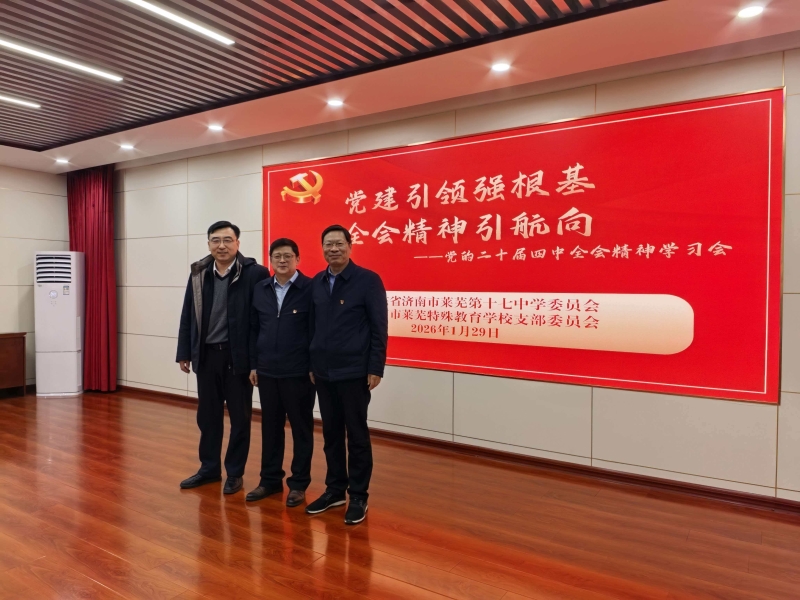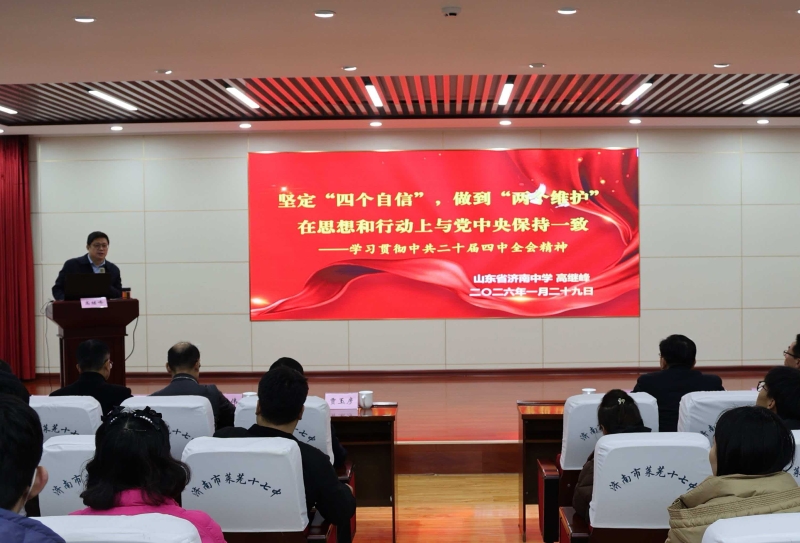 为深入学习贯彻党的二十届四中全会精神,做好集中宣讲工作,1月29日,我校初高中直升中心主任高继峰受邀参加了由中共山东省济南市莱芜第十七中学委员会与中共济南市莱芜特殊教育学校支部委员会联合举办的党建共建学习会,以专题报告形式解读全会精神,共绘协同发展蓝图。 高继峰以“坚定‘四个自信’,做到‘两个维护’,在思想和行动上与党中央保持一致”为题,聚焦“十五五”规划,深入解读了坚持党的全面领导、人民至上、高质量发展等核心原则,全面剖析了党的集中统一领导、以人民为中心、集中力量办大事等中国特色社会主义制度优势。宣讲中,高继峰以济南教育高质量发展三年行动计划为纲,结合济南中学党建业务融合的探索成效,在聚焦党建引领教育发展,立德树人根本任务、学校精细化治理、校园文化建设、教学教研创新(融入人工智能技术)、高素质教师队伍建设等方面,分享了学校将全会精神切实融入办学治校、品牌提升、思政育人等重点领域的实践路径,交流落实举措与学习感悟,为两校发展提供了有益借鉴。 济南市莱芜十七中党委委员、副校长赵凌志在总结中表示,本次宣讲报告内涵丰富、贴合教育实际,为两校深入学习贯彻党的二十届四中全会精神指明了方向。他号召全体党员干部要以此次共建学习为契机,牢记“为党育人、为国育才”初心,真抓实干、锐意进取,奋力开创教育教学工作新局面。 此次联学共建活动,既是济南中学发挥资源优势、分享办学经验的具体举措,也深化了济莱三校对党的二十届四中全会精神的深刻领悟,凝聚了思想共识,促进了校际间的交流互鉴。下一步,济南中学将持续深化党建共建工作,充分发挥党建引领作用,加强与各兄弟学校的沟通协作,以更加昂扬的姿态,为推进教育强省建设和济南教育高质量发展贡献智慧力量。(党群工作部)