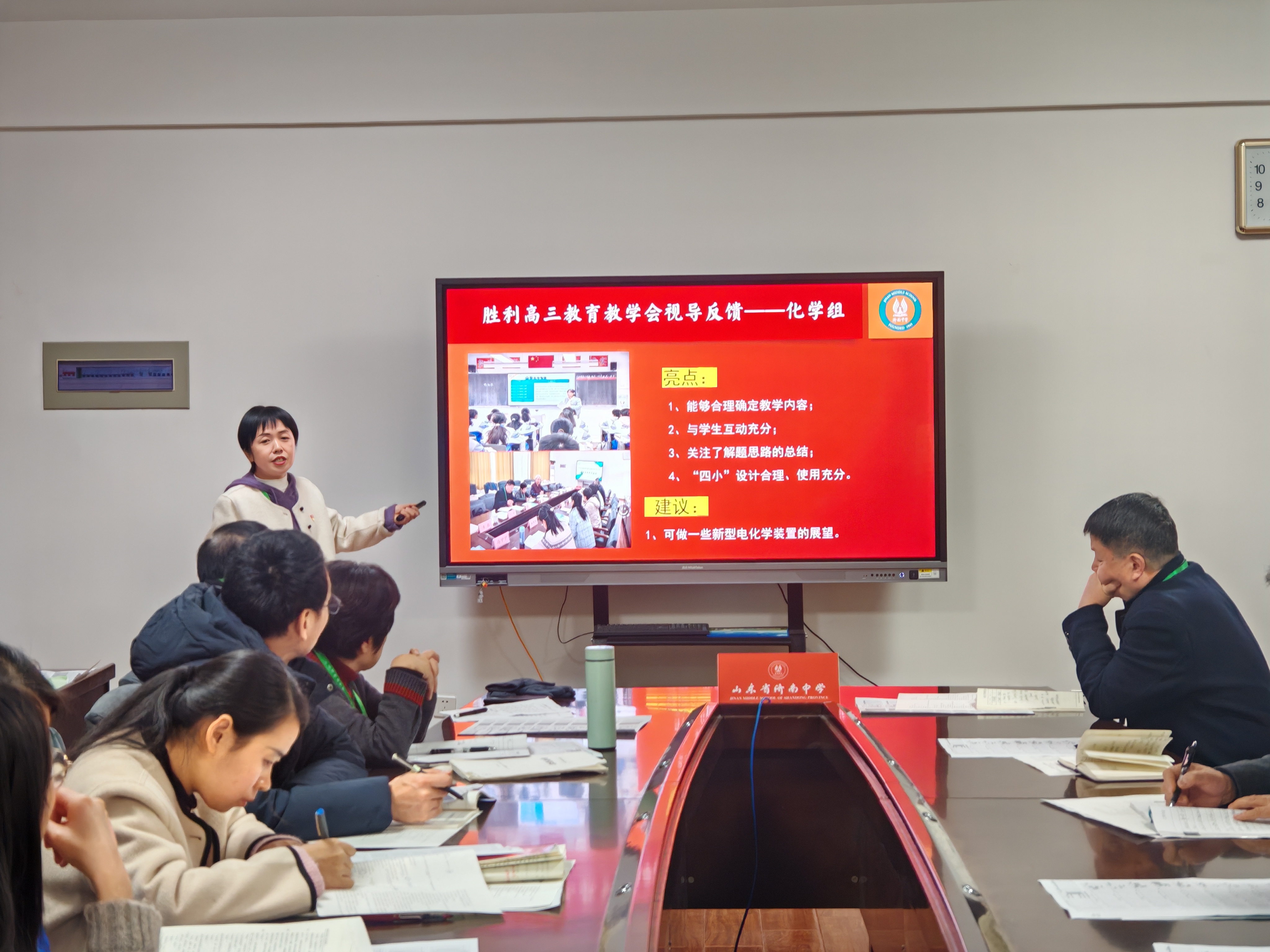 为深入剖析阶段教学成效、精准部署期末备考冲刺、筑牢立德树人根基,胜利高三年级近日围绕成绩分析、教学视导反馈、期末备考策略及师德师风建设四大核心议题召开专题会议。会议由李宁部长主持,全体高三教师与会,为下一阶段工作明晰路径、凝聚共识。 一、数据分析锚定靶向,分层施策明晰路径 年级主任张玉峰以数据为抓手,对各班各科学科上线情况、班级进步幅度展开全面剖析,同时对标高考要求,精准研判各学科、各班级的成绩差异,明确"壮苗、育苗、保苗、选苗"分层培优策略,为下一阶段让教学施策更具针对性、提质增效筑牢数据根基。