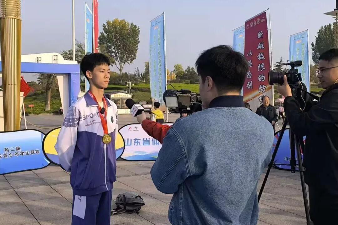 这份优异成绩不仅赢得全场瞩目,更获得中央广播电视总台体育频道(CCTV5)的关注。赛后,央视记者专程专访高梓恒等优秀队员,同学们坦诚分享了训练中的成长与感悟,用质朴话语向全国观众展现了济中学子积极向上、奋勇拼搏的精神风貌。