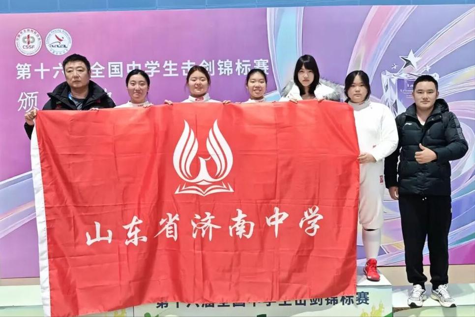 12月8日,第十六届全国中学生击剑锦标赛在江苏江阴圆满落幕。作为国内中学生击剑最高级别赛事,本届比赛吸引了全国各省、自治区、直辖市及港澳地区近4000名顶尖选手参赛。山东省济南中学击剑队派出9名队员参赛,最终斩获高中女子重剑团体第七名、男子重剑团体第十五名的优异成绩。 在为期两天的激烈角逐中,济南中学击剑队于柯杪、吕佳逸、李紫涵、杨怀诺、张彤欣、李孝义、徐景灏、陈嘉盛、艾瑞9名击剑队员展现出顽强拼搏的精神。女子重剑队面对强手沉着应战,凭借稳定发挥跻身前八;男子重剑队则在高手如云的赛场稳步前进,最终获得第十五名。队员们顶住高强度竞技压力,用昂扬斗志迎接每一轮挑战,充分展现了济南中学学子的体育精神。 优异成绩的取得,离不开教练员的科学指导、队员们的刻苦训练,更得益于学校完善的特长生培养体系。济南中学始终重视学生全面发展,通过专业训练、心理辅导等全方位支持,为运动员成长创造良好环境。此次全国赛事的亮眼表现,是对学校击剑项目教学成果的充分肯定。