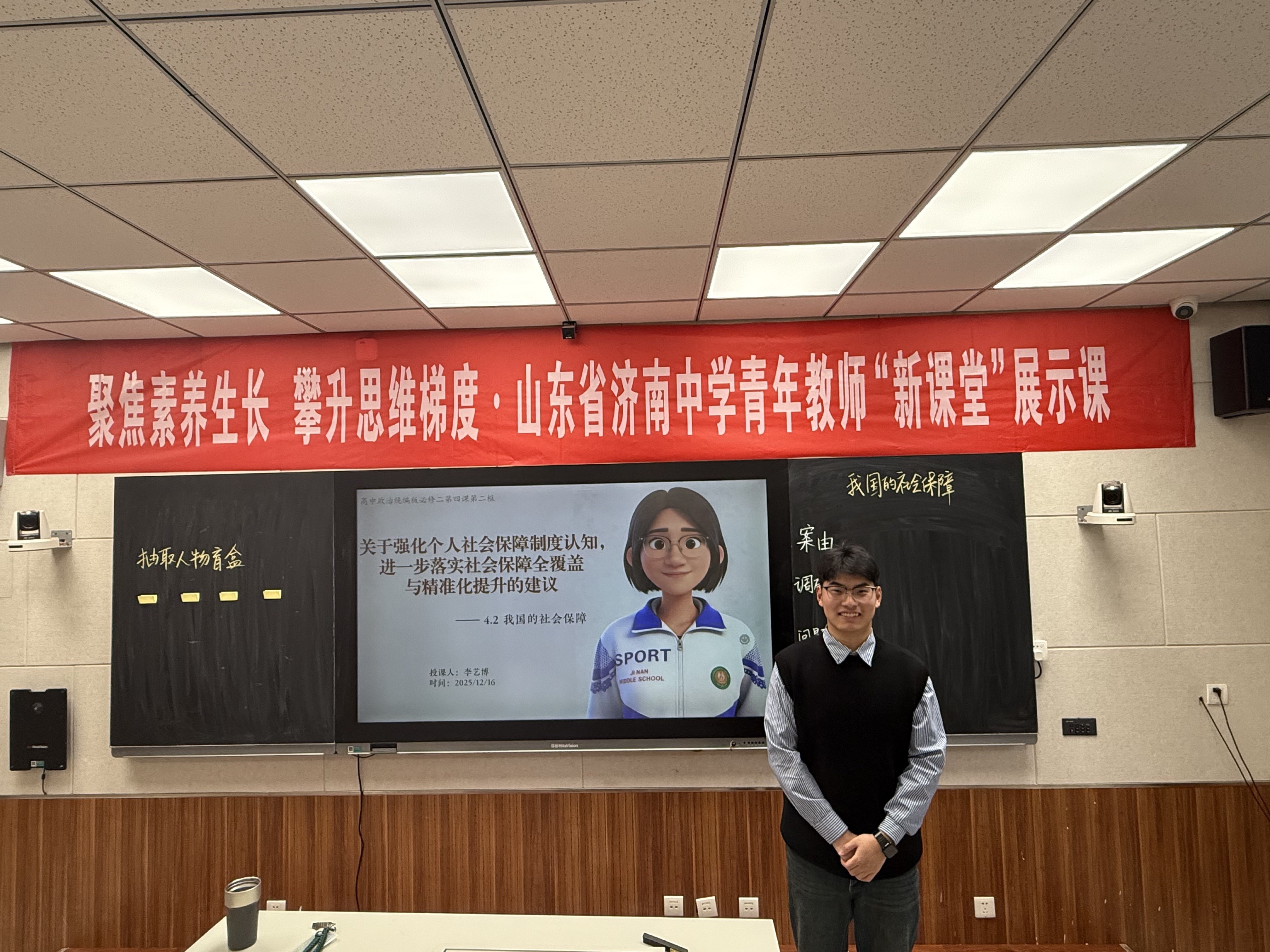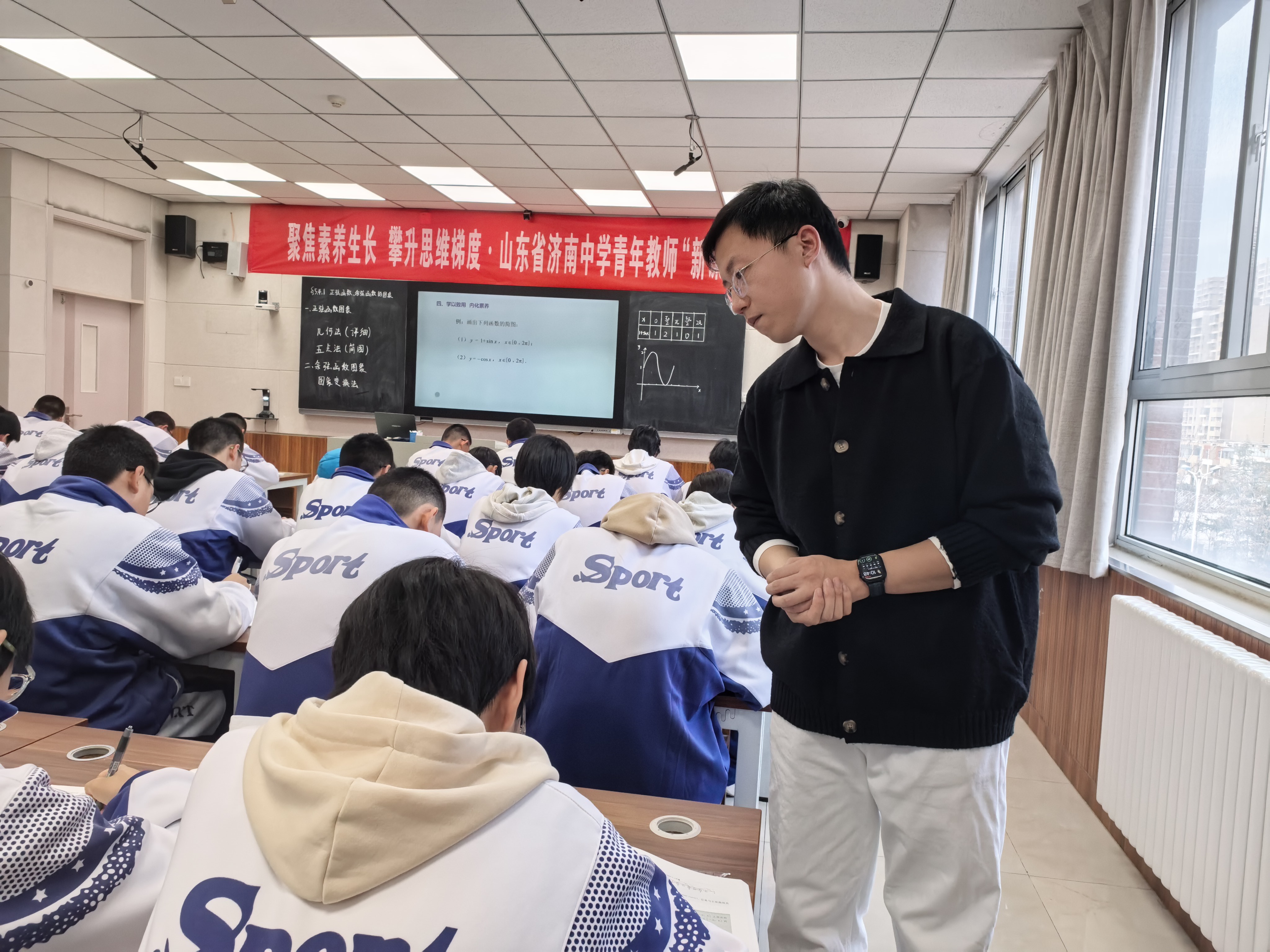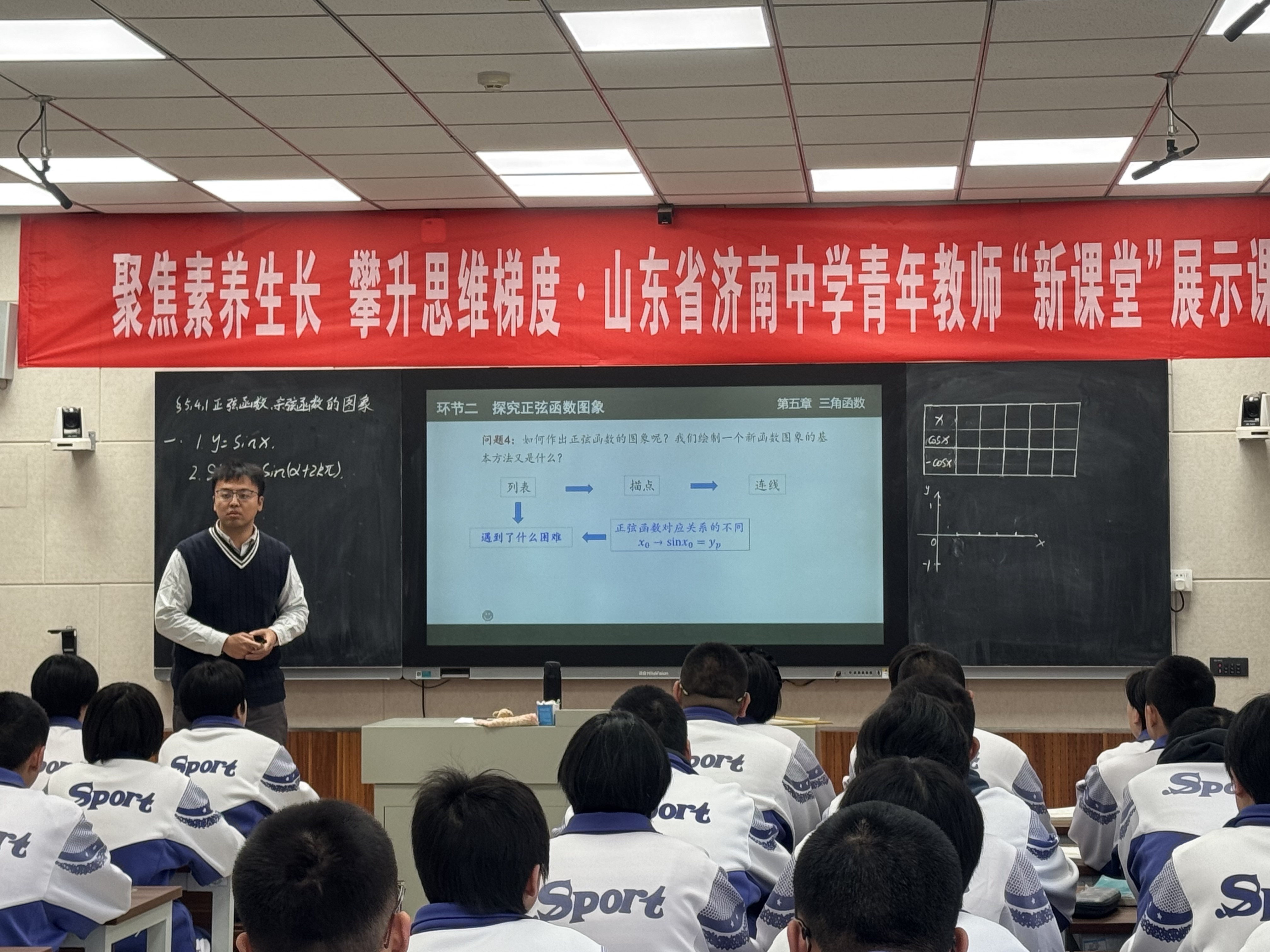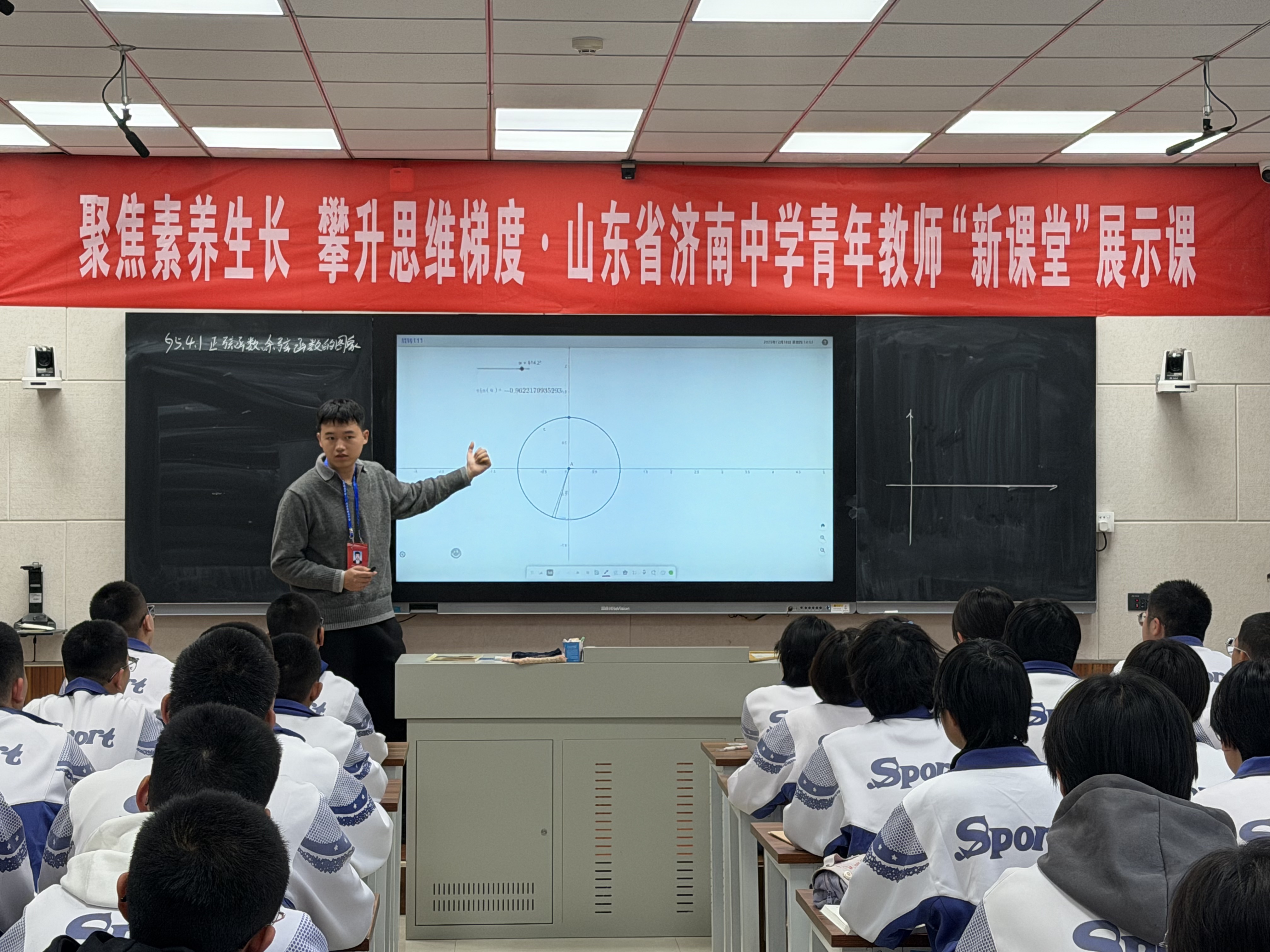 本次“聚焦素养生长,攀升思维梯度”青年教师新课堂展示活动,正是我校探索素养导向教学的有力实践。从《正弦函数、余弦函数的图像》中数形结合思维与建模能力的双重建构,到《气象灾害:追寻苏轼足迹》跨学科探究与时空分析能力的同步提升;从《排球正面上手发球》中运动技能与团队协作能力的协同发展,到《我国的社会保障》公共参与辩证思维能力的全面锻炼,再到《黄土高原水土流失的治理》区域认知与实践创新能力的深度培养——七节展示课构建了完整的能力培养体系,在情境创设与问题解决中推动学生从知识掌握向能力进阶的实质性转变。济南中学将继续以课堂为主阵地,通过多层次、多维度的教学创新,让学生在真实问题的探究中不断提升思维品质与实践能力,真正实现“新课堂”向“新素养”的价值转化。