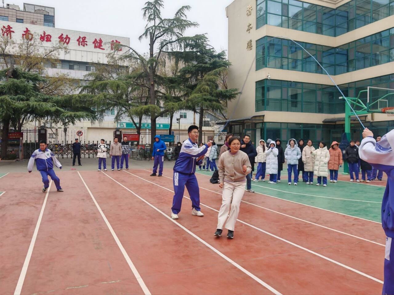 瑞雪初降,暖意融融。12月12日下午13:50至14:40,胜利校区操场热闹非凡,高三年级“绳跃青春 同心向阳”12人8字跳绳团体心理拓展活动如期开展。恰逢2025年济南第一场冬雪悄然飘落,雪花轻舞与青春跃动相映成趣,全体高三师生齐聚操场,以活力跃动释放备考压力,以同心协作凝聚奋进力量,在瑞雪美景中收获成长与温暖。