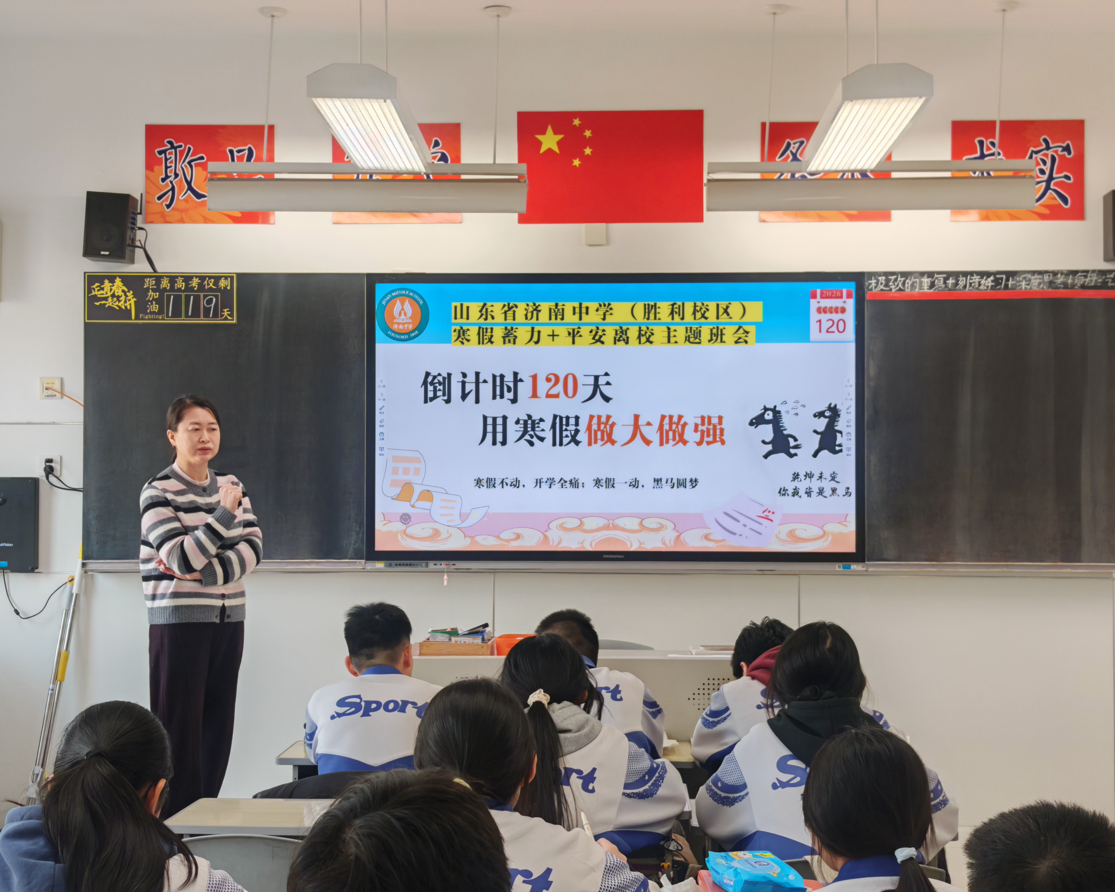 行至半山,更需聚力攀援;冬藏寒尽,只为蓄势待春。近期,山东省济南中学(胜利校区)高三年级有序召开期末家长会与休业式,两项活动衔接紧密、层层递进,以“家校携手+假期赋能”双主线,凝聚冲刺合力,为2026届高三学子寒假备考与高考冲刺筑牢根基。 家长会:家校同心,携手赋能成长 家长会以“家校携手并进,寒假全力护航”为核心,通过年级集中讲话与班级分层交流,统一思想、凝聚共识,搭建起家校协同育人的坚实桥梁。