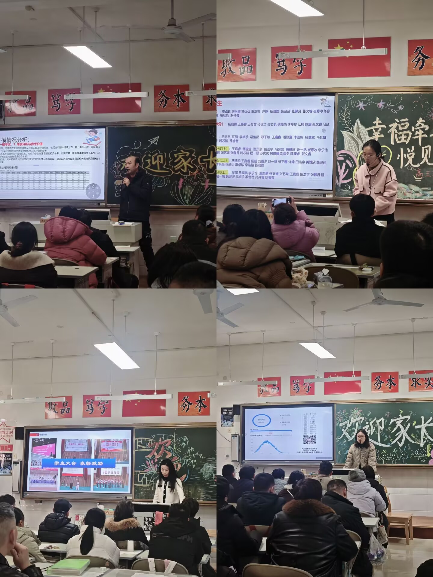专题讲座后,各班级家长会有序开展。班主任向家长们详细介绍了学校高三备考的各项举措,从师资团队打造、集体备课教研、精细化自习管理,到手批面阅答疑、心理减压活动、励志德育引导等方面,全面展现了学校为备考筑牢的多维支撑体系。同时,班主任精准分析班级学生的整体学习状态与成长态势,肯定了孩子们的拼搏精神,明确了最后百余天的备考重点与方向。临近寒假,班主任就假期安全、学生心理疏导等内容进行重点提醒。